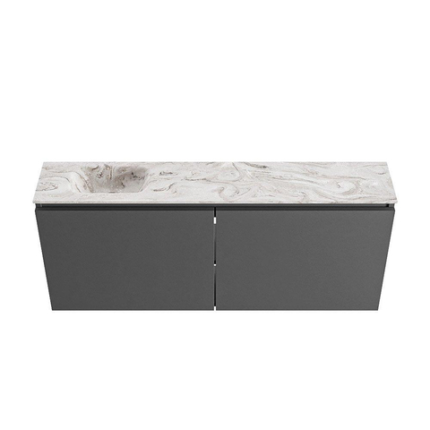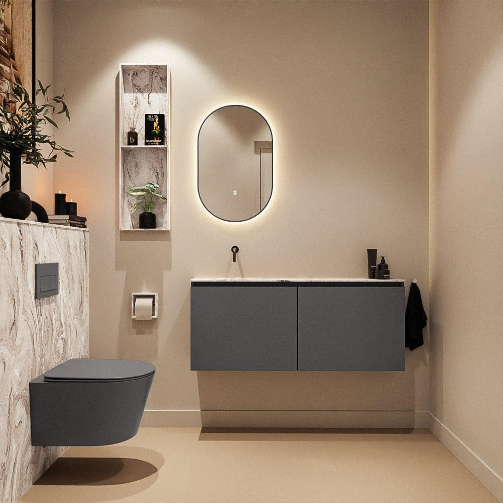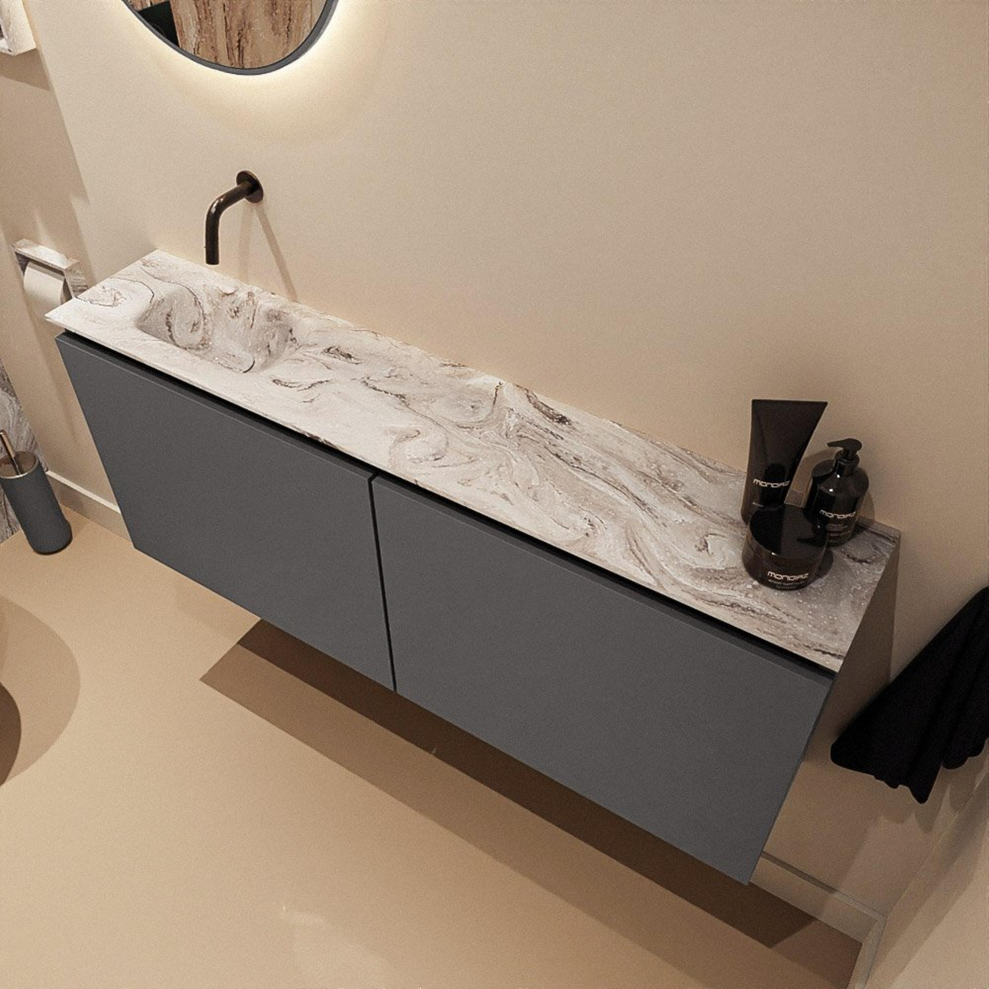 MONDIAZ TURE-DLUX 120cm toiletmeubel Dark Grey. EDEN wastafel Glace positie links. Zonder kraangat.