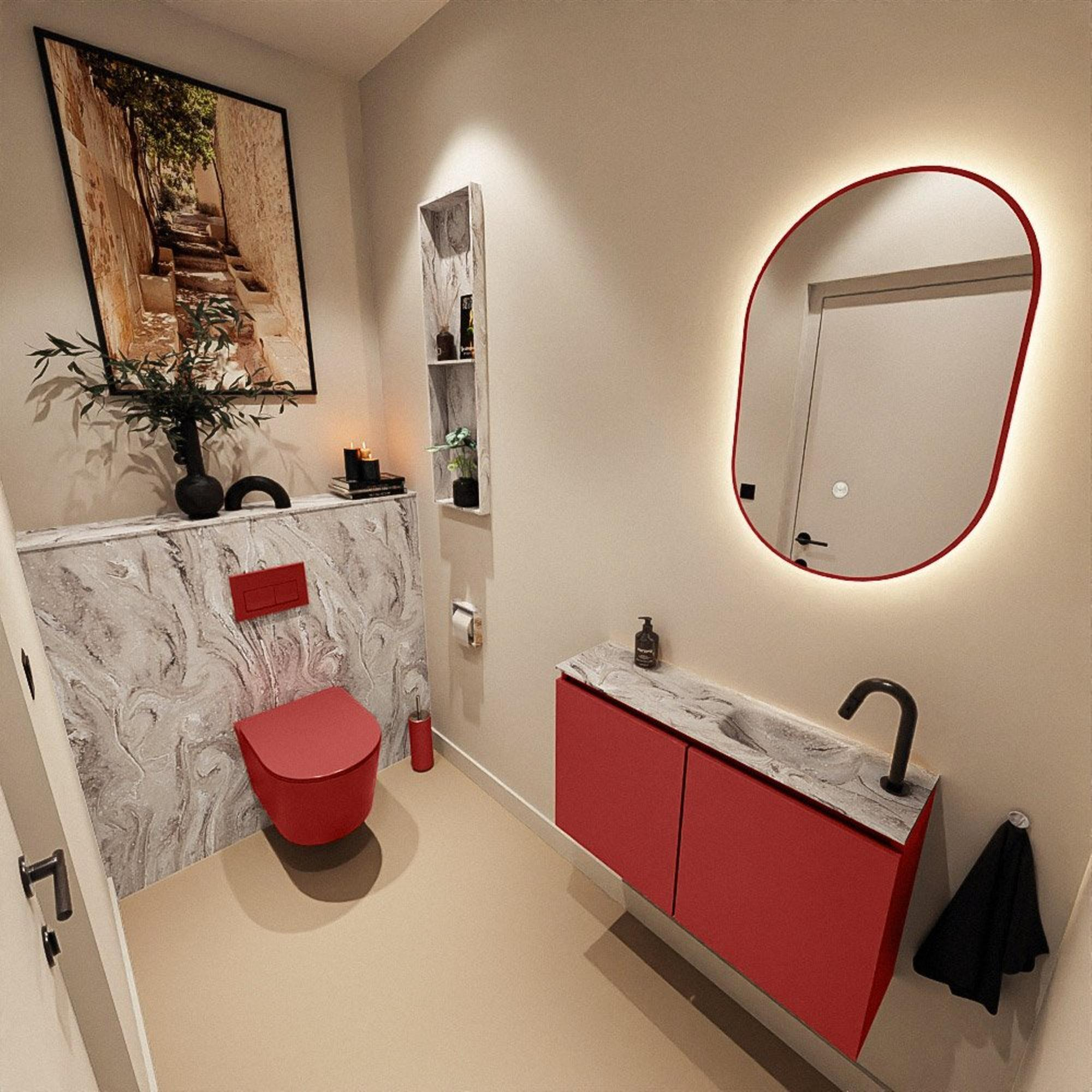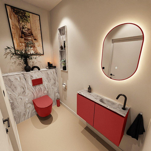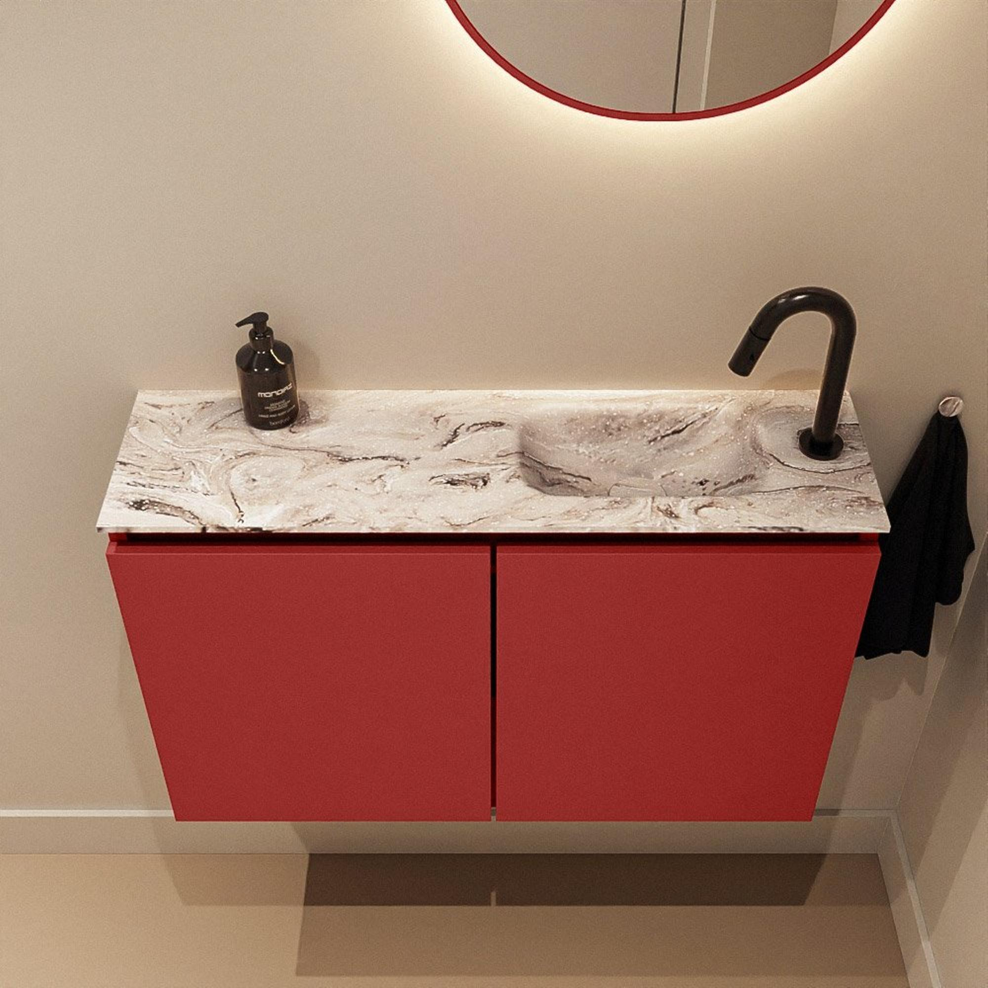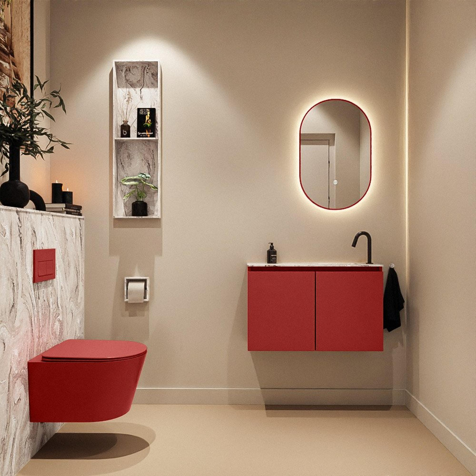 MONDIAZ TURE-DLUX 80cm toiletmeubel Fire. EDEN wastafel Glace positie rechts. Met 1 kraangat.