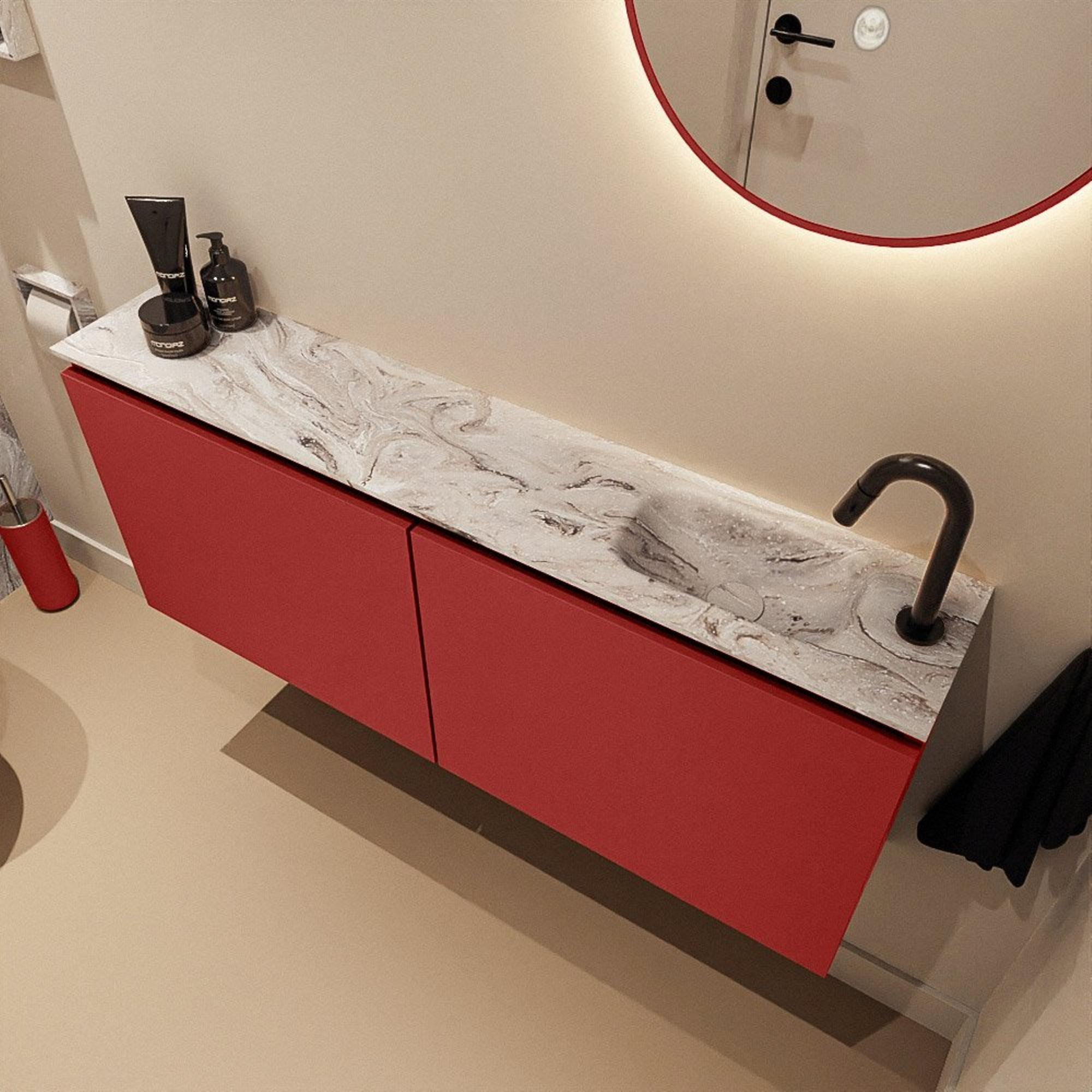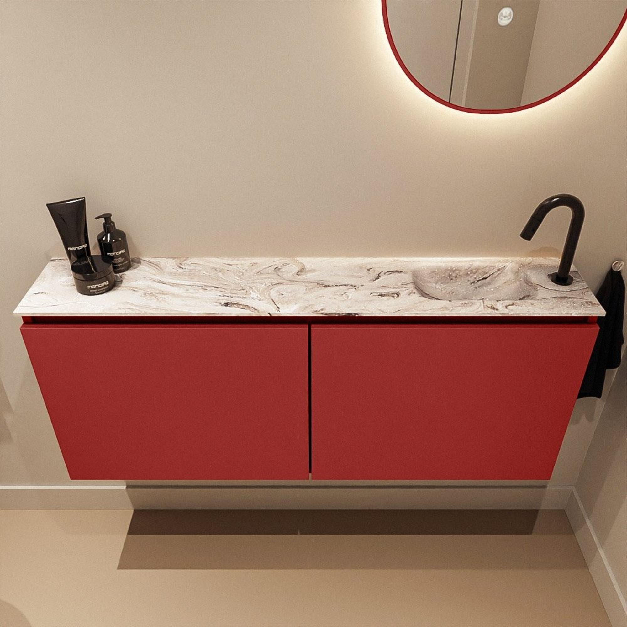 MONDIAZ TURE-DLUX 120cm toiletmeubel Fire. EDEN wastafel Glace positie rechts. Met 1 kraangat.