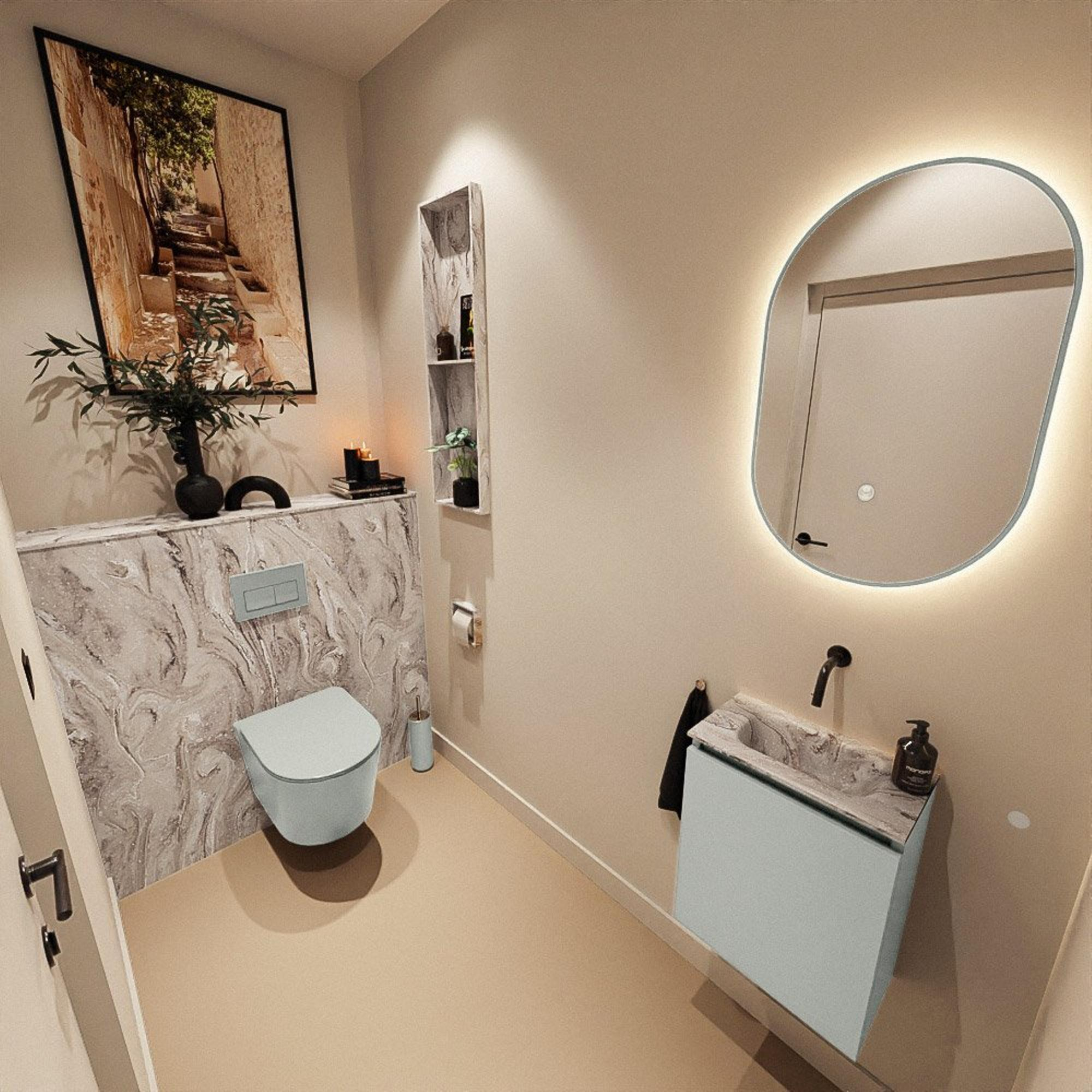 MONDIAZ TURE-DLUX 40cm toiletmeubel Greey. EDEN wastafel Glace positie midden. Zonder kraangat.