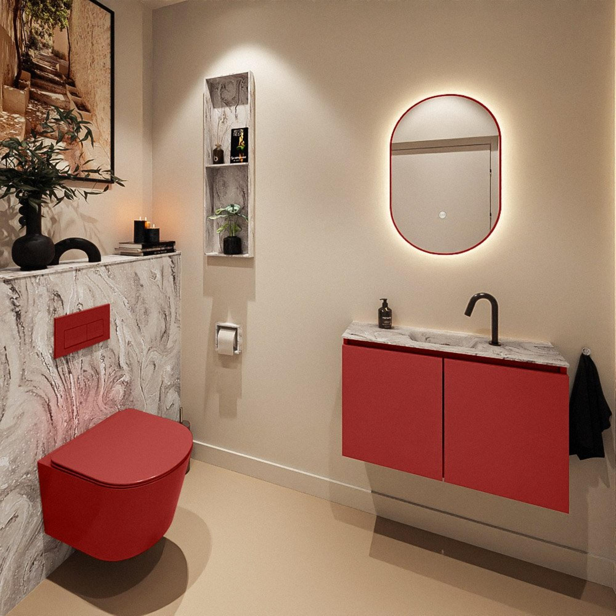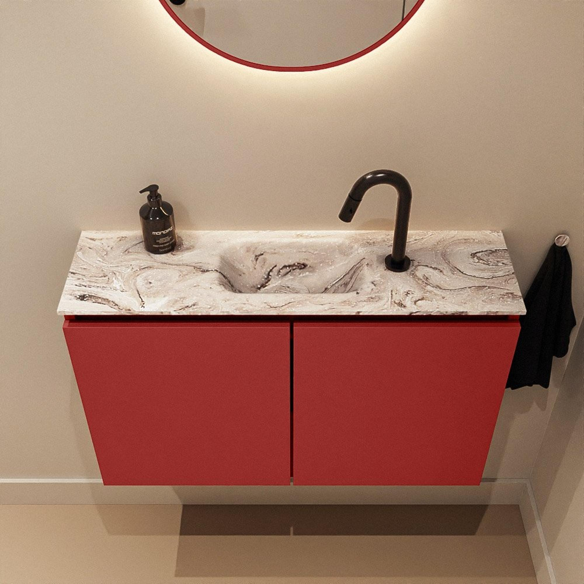 MONDIAZ TURE-DLUX 80cm toiletmeubel Fire. EDEN wastafel Glace positie midden. Met 1 kraangat.