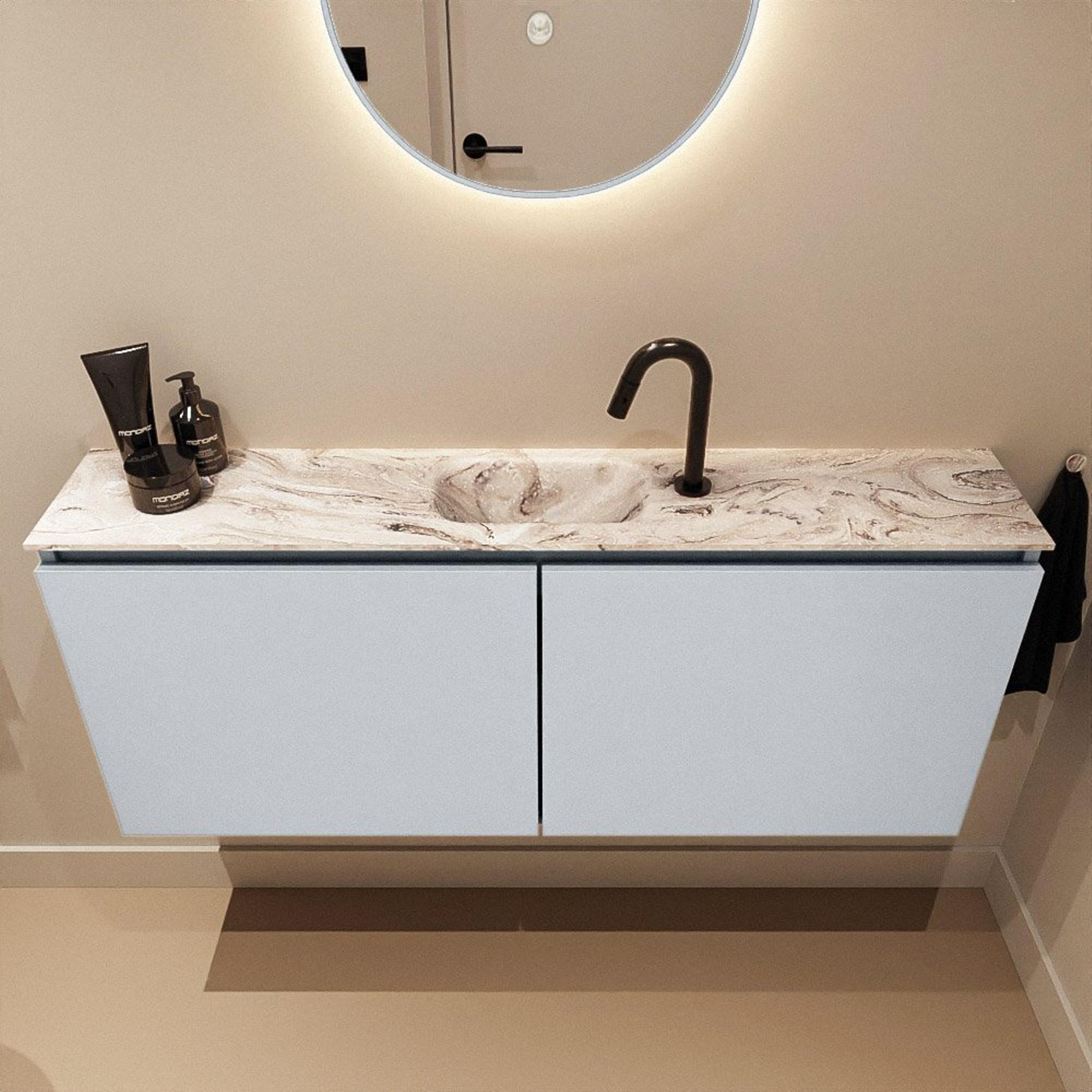 MONDIAZ TURE-DLUX 120cm toiletmeubel Clay. EDEN wastafel Glace positie midden. Met 1 kraangat.