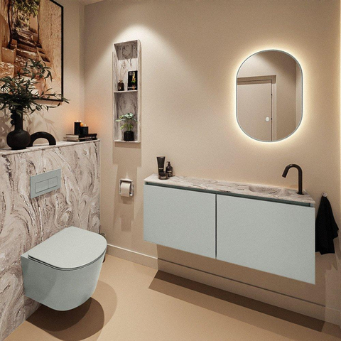 MONDIAZ TURE-DLUX 120cm toiletmeubel Greey. EDEN wastafel Glace positie rechts. Met 1 kraangat.