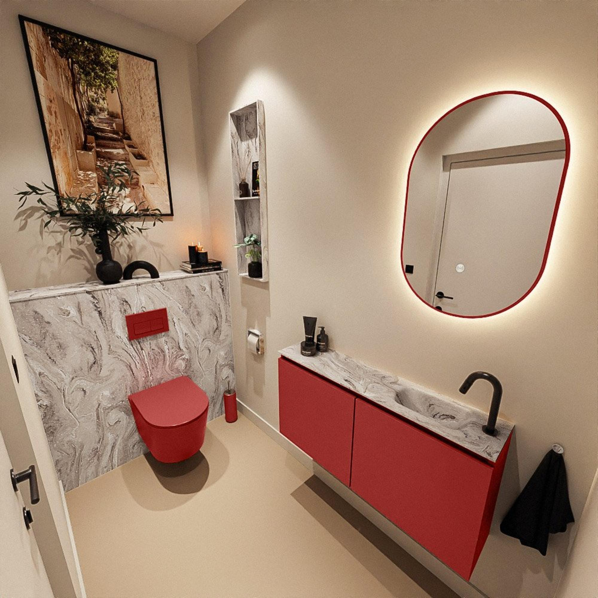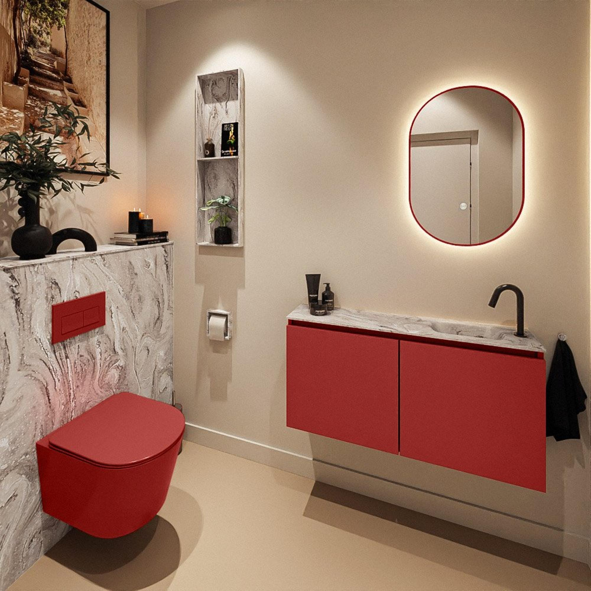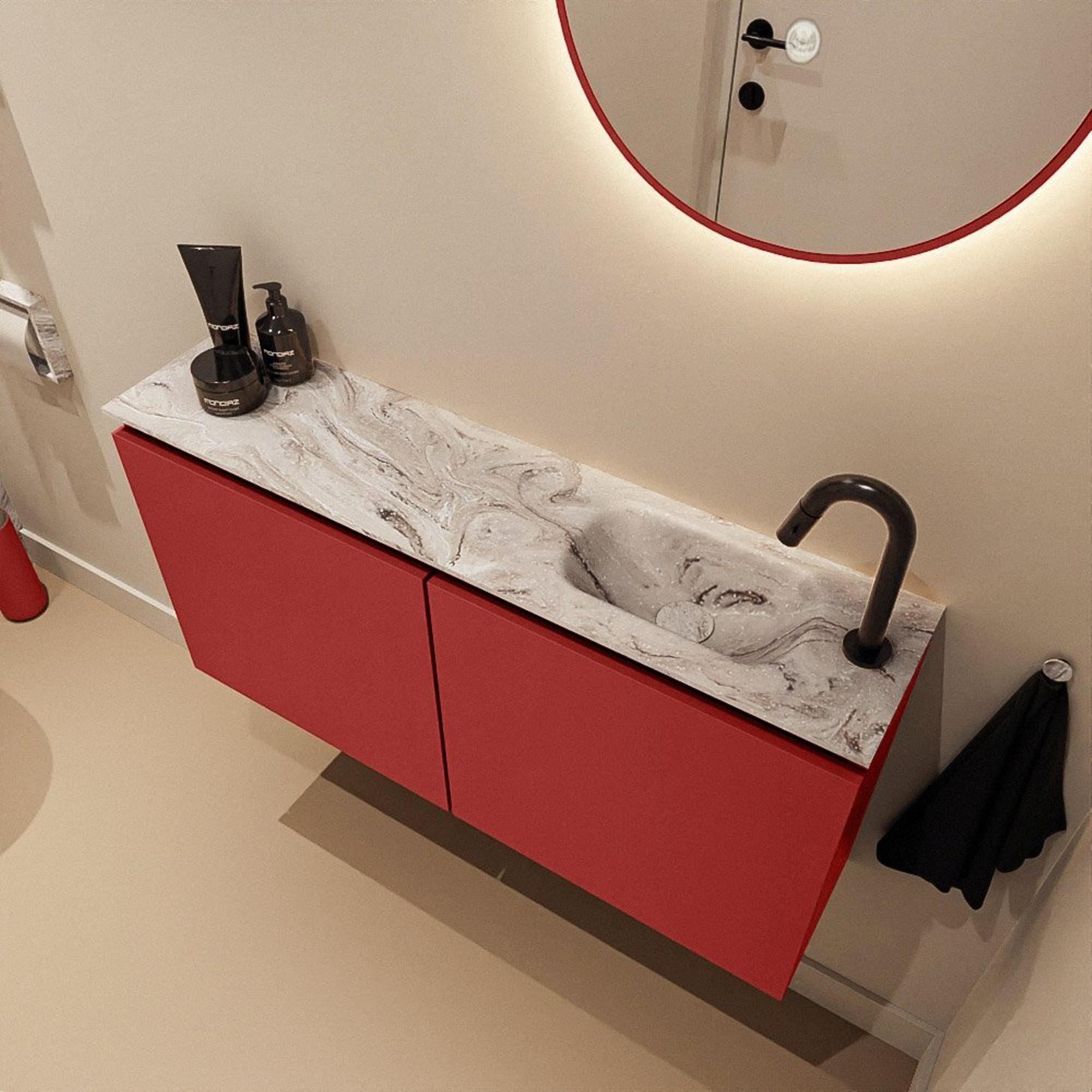 MONDIAZ TURE-DLUX 100cm toiletmeubel Fire. EDEN wastafel Glace positie rechts. Met 1 kraangat.