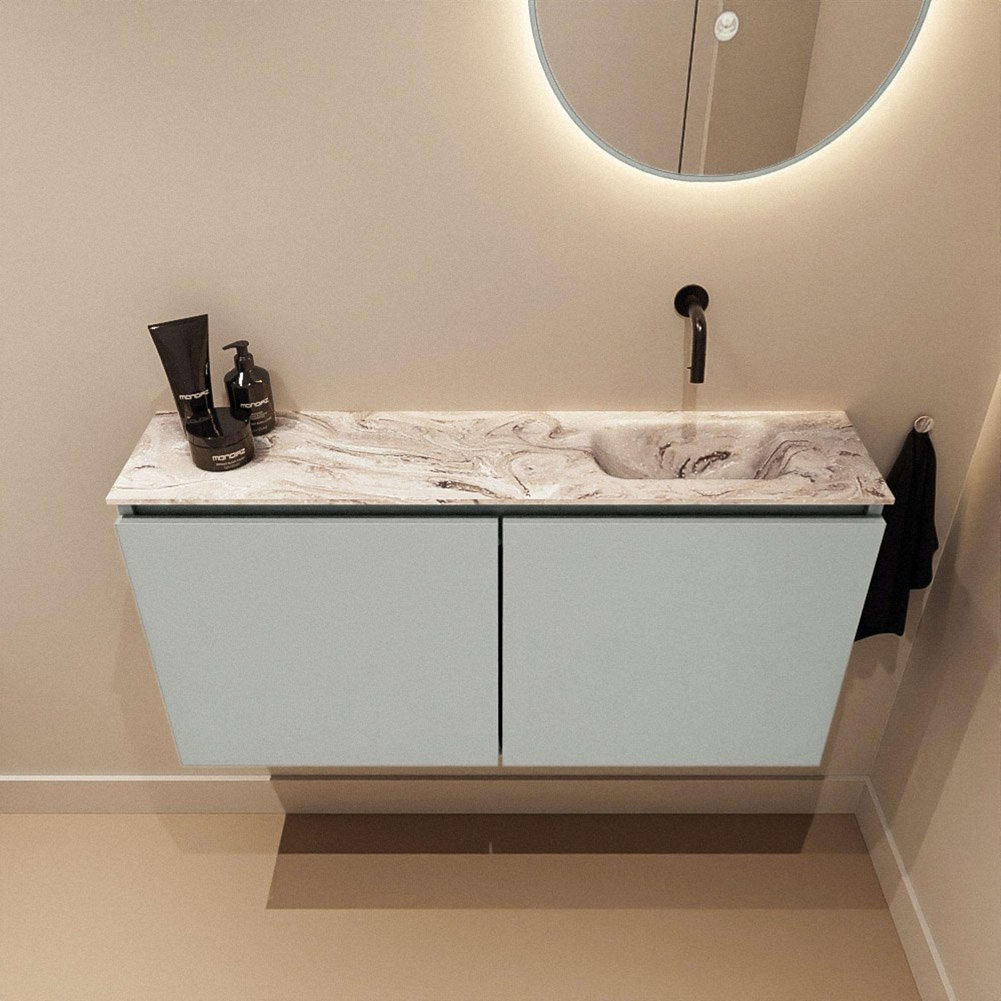 MONDIAZ TURE-DLUX 100cm toiletmeubel Greey. EDEN wastafel Glace positie rechts. Zonder kraangat.