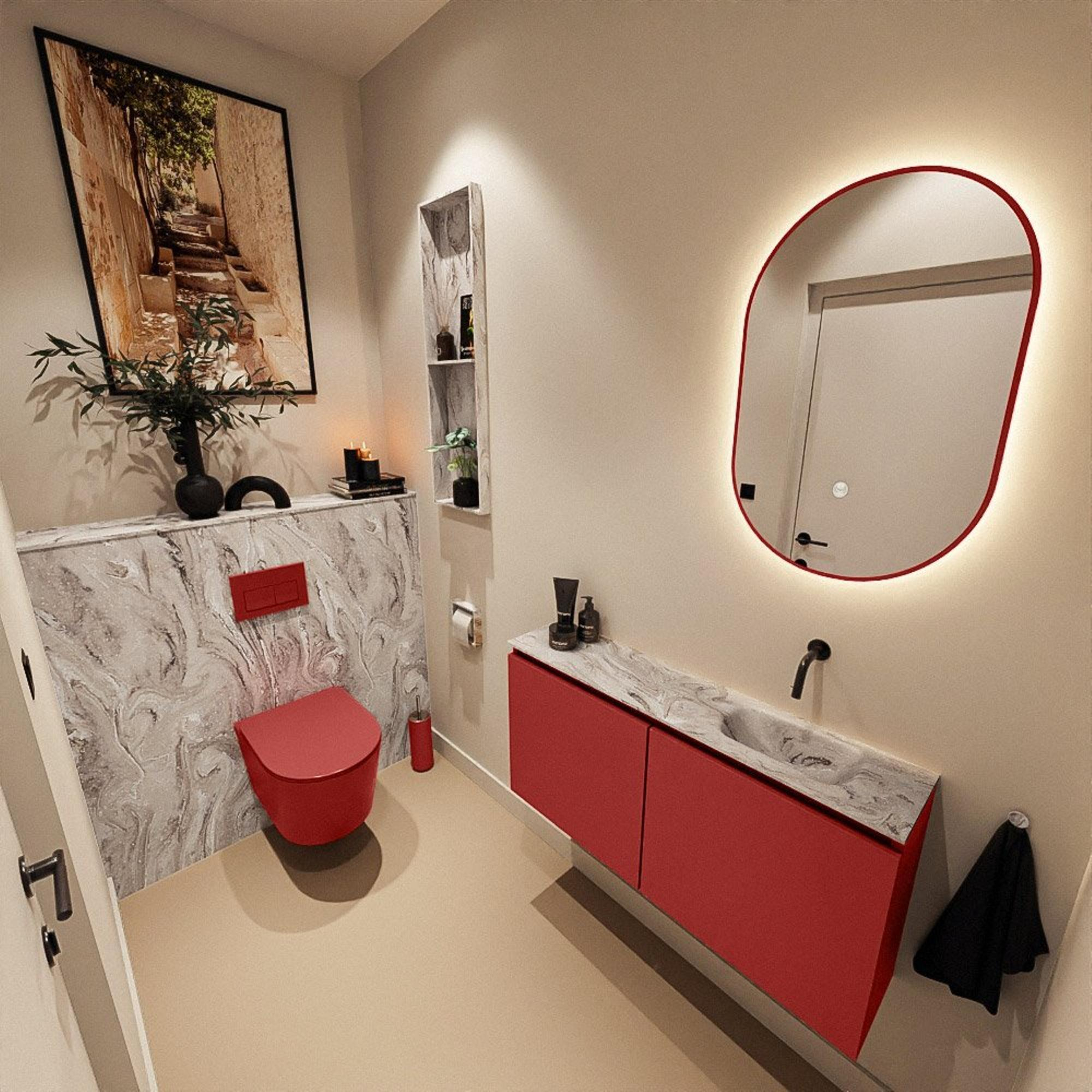 MONDIAZ TURE-DLUX 100cm toiletmeubel Fire. EDEN wastafel Glace positie rechts. Zonder kraangat.