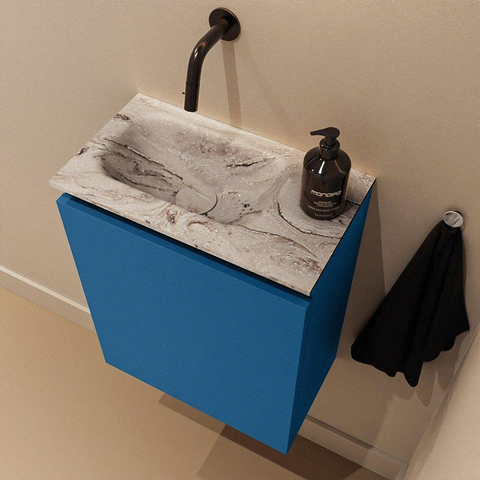 MONDIAZ TURE-DLUX 40cm toiletmeubel Jeans. EDEN wastafel Glace positie links. Zonder kraangat.