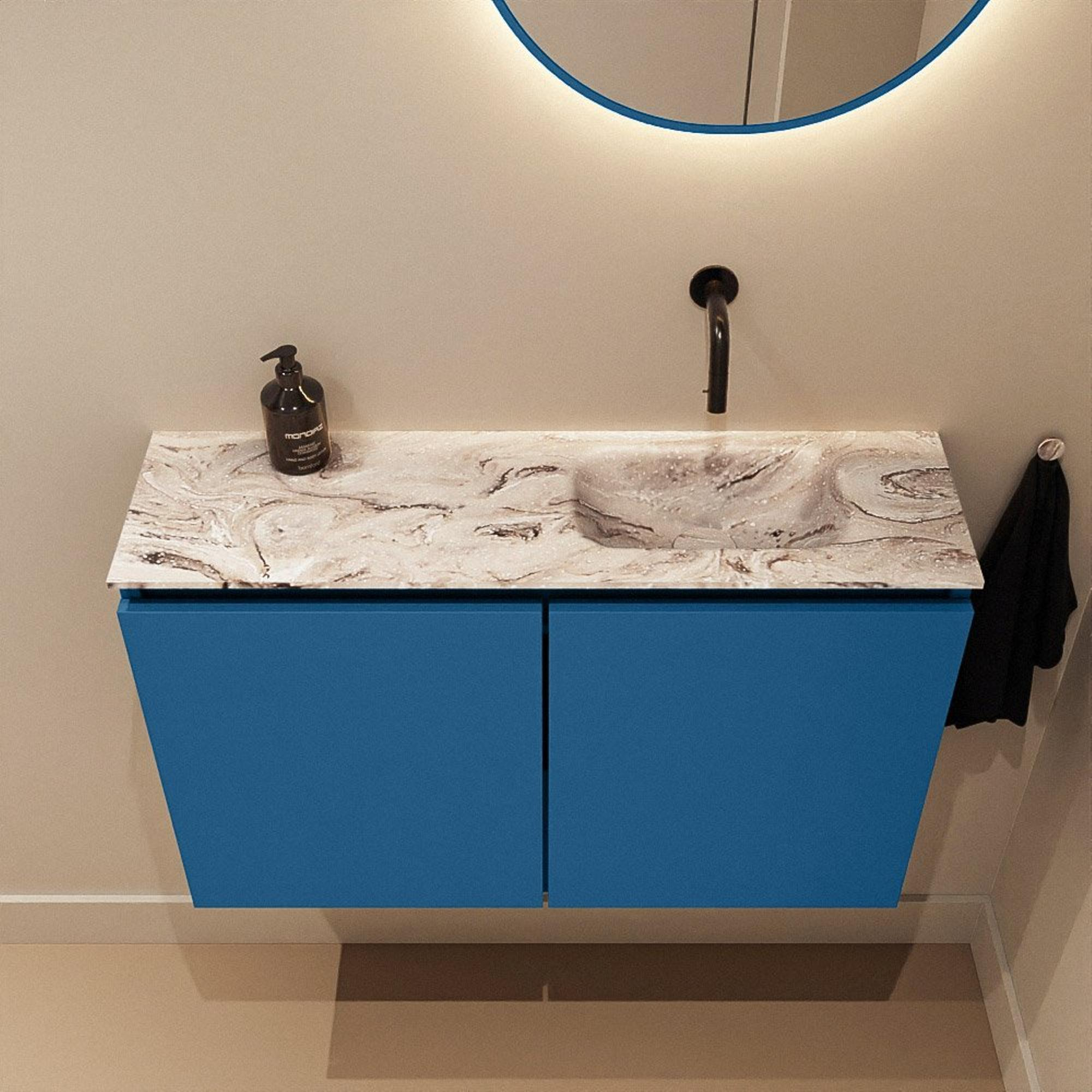 MONDIAZ TURE-DLUX 80cm toiletmeubel Jeans. EDEN wastafel Glace positie rechts. Zonder kraangat.