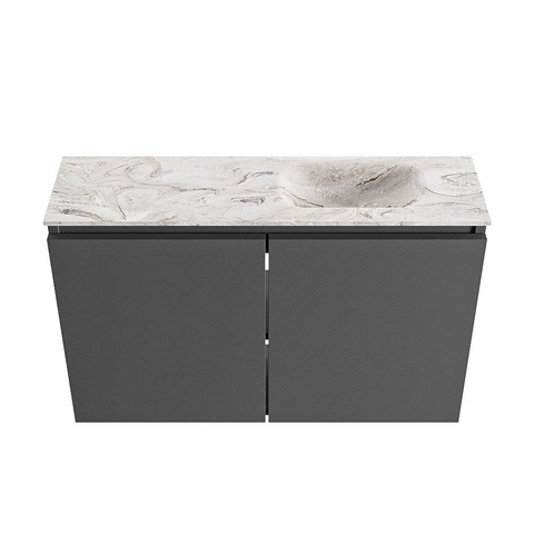 MONDIAZ TURE-DLUX 80cm toiletmeubel Dark Grey. EDEN wastafel Glace positie rechts. Met 1 kraangat.