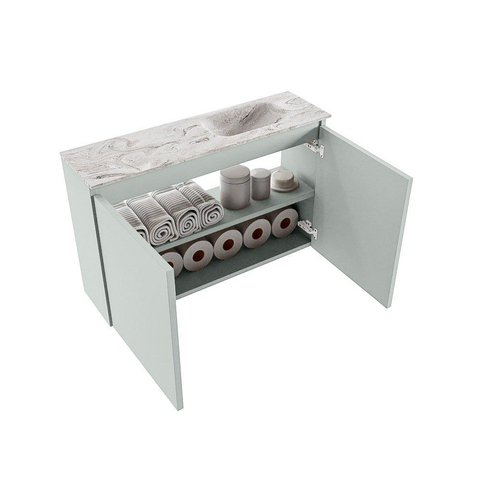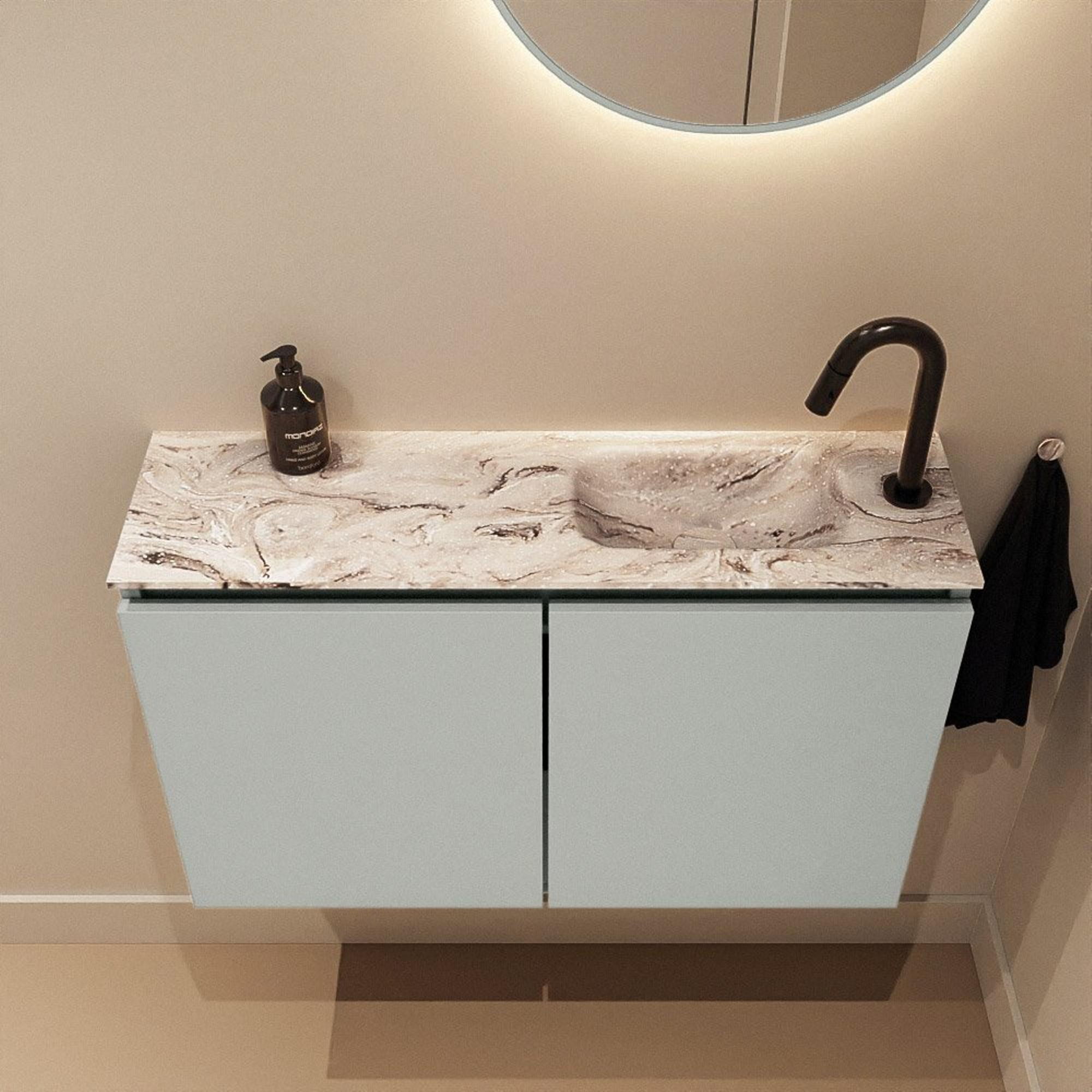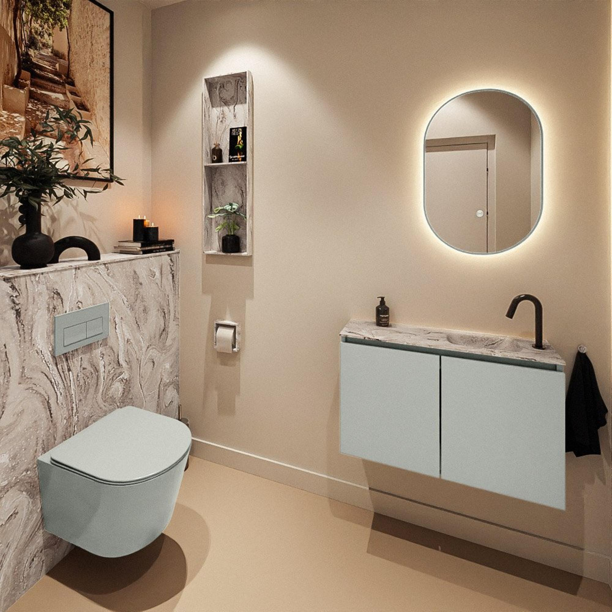MONDIAZ TURE-DLUX 80cm toiletmeubel Greey. EDEN wastafel Glace positie rechts. Met 1 kraangat.