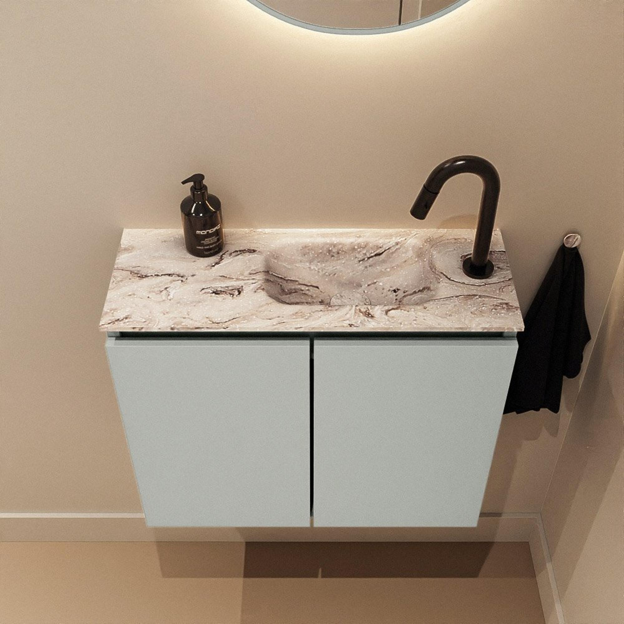 MONDIAZ TURE-DLUX 60cm toiletmeubel Greey. EDEN wastafel Glace positie rechts. Met 1 kraangat.