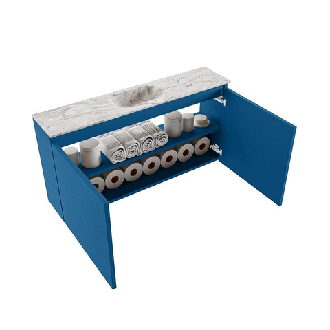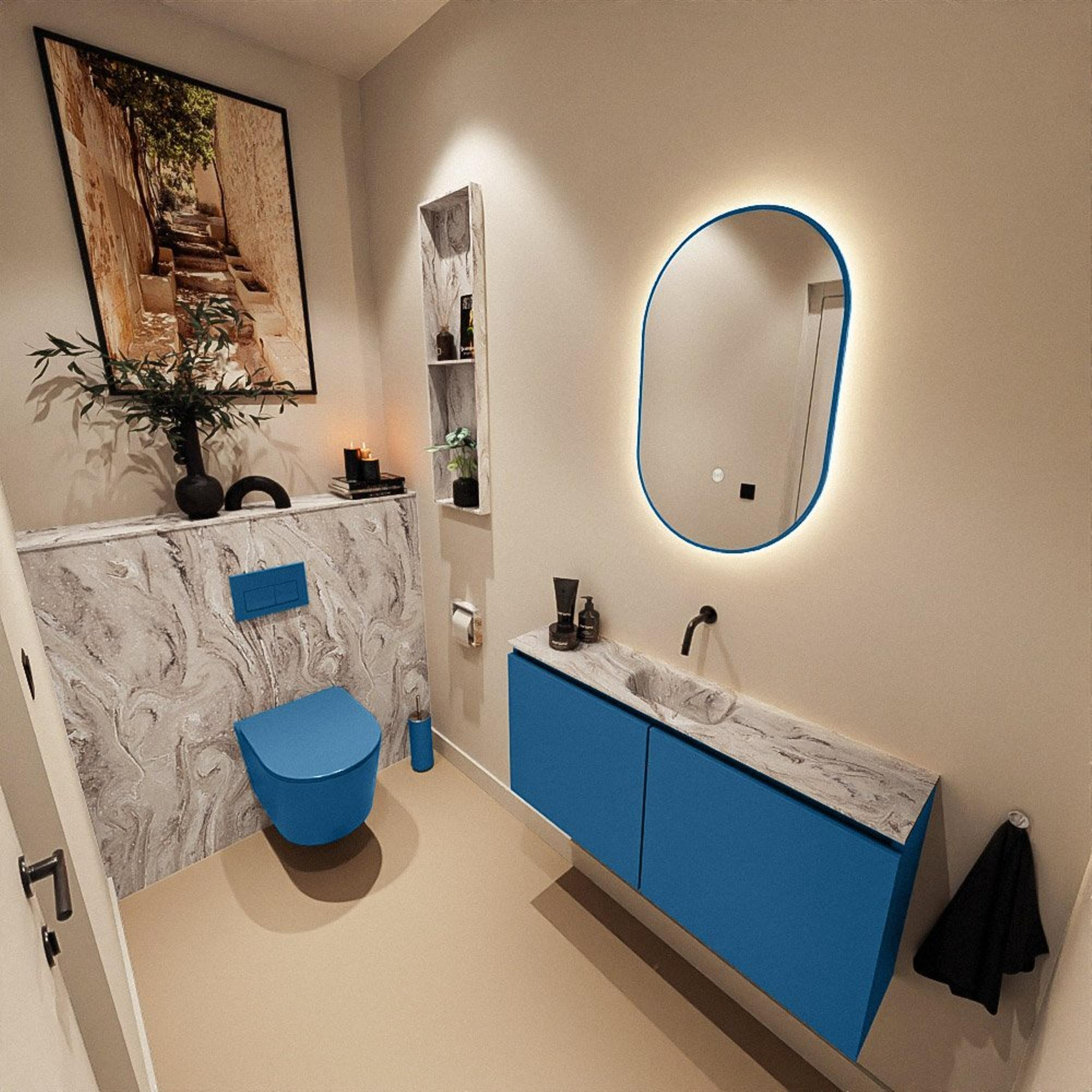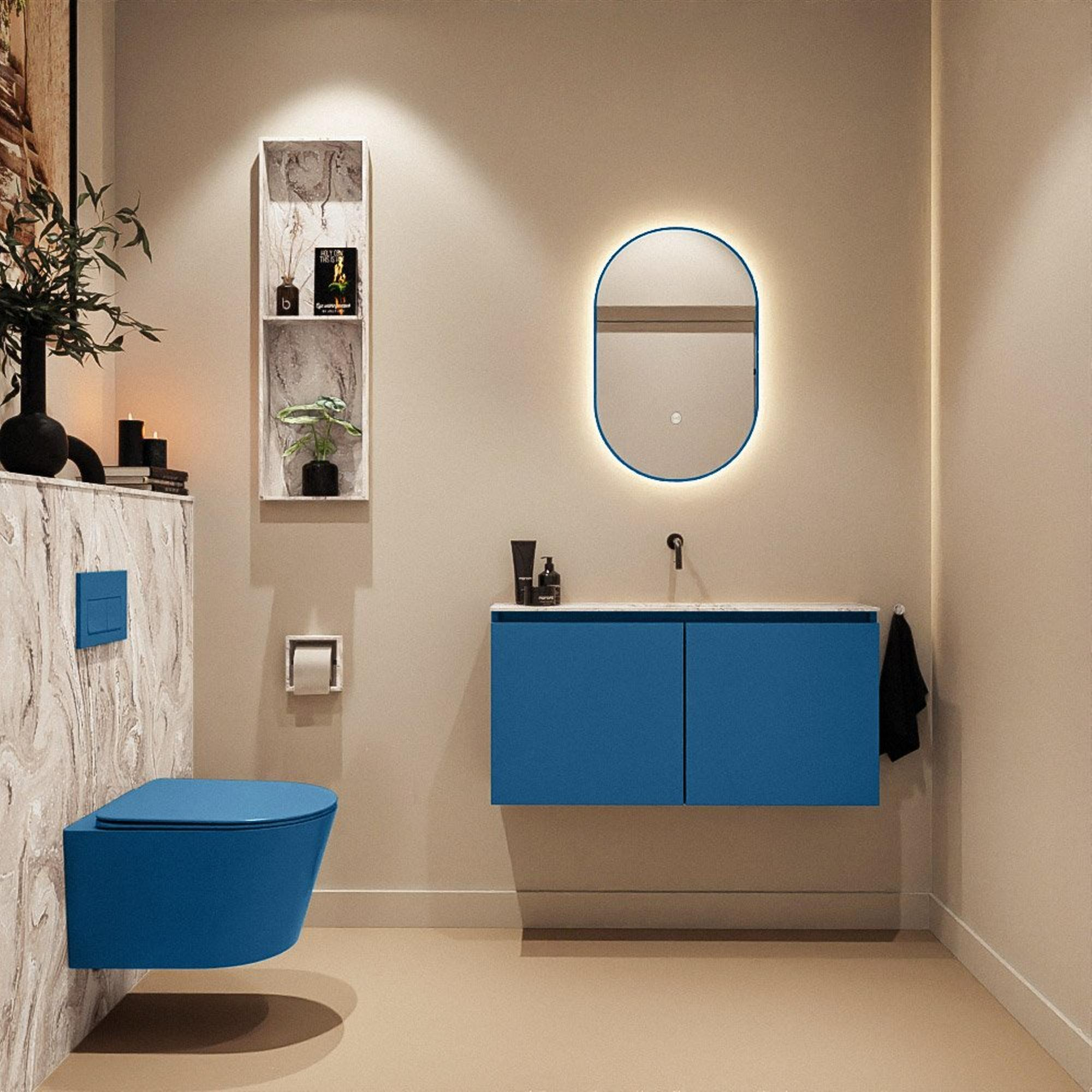 MONDIAZ TURE-DLUX 100cm toiletmeubel Jeans. EDEN wastafel Glace positie midden. Zonder kraangat.