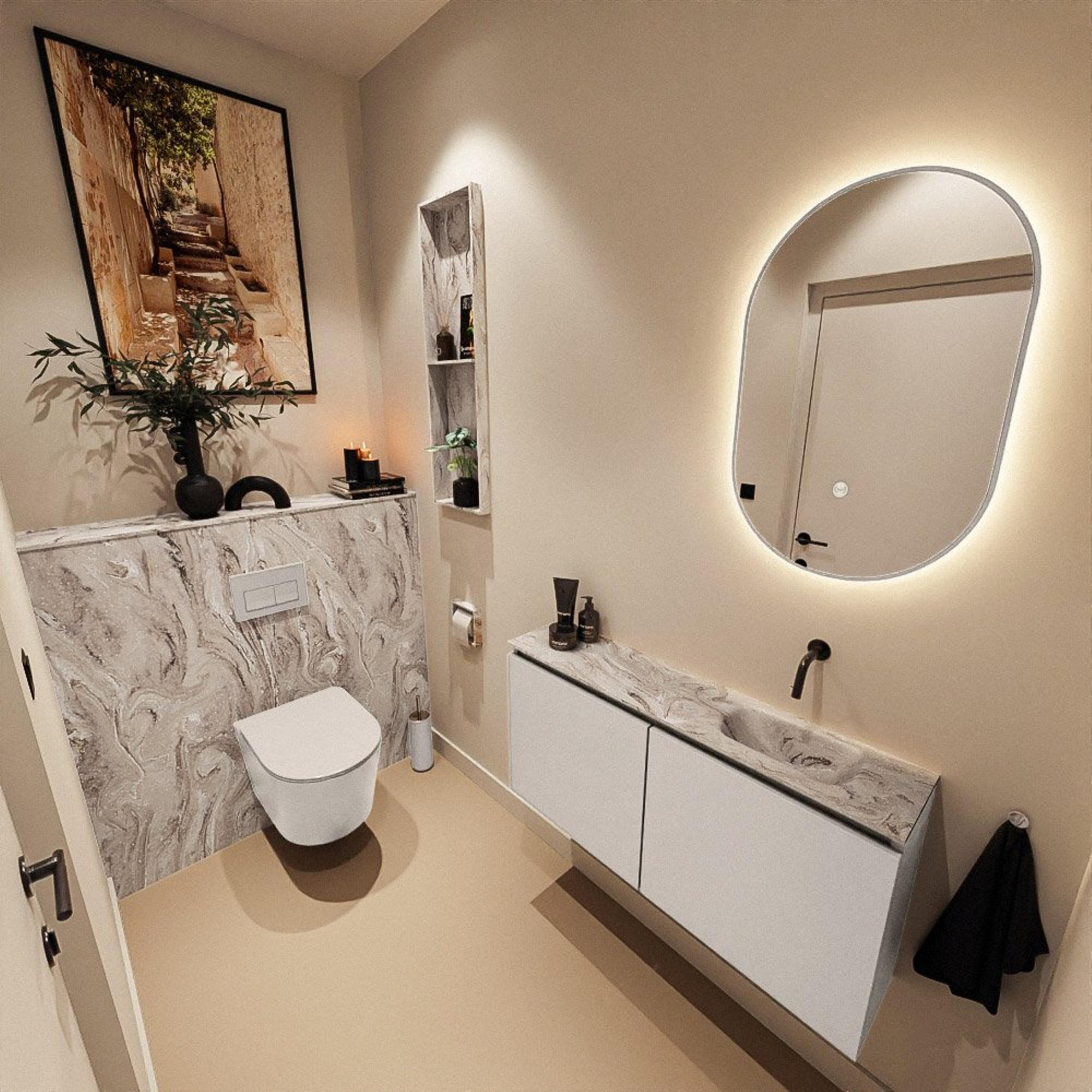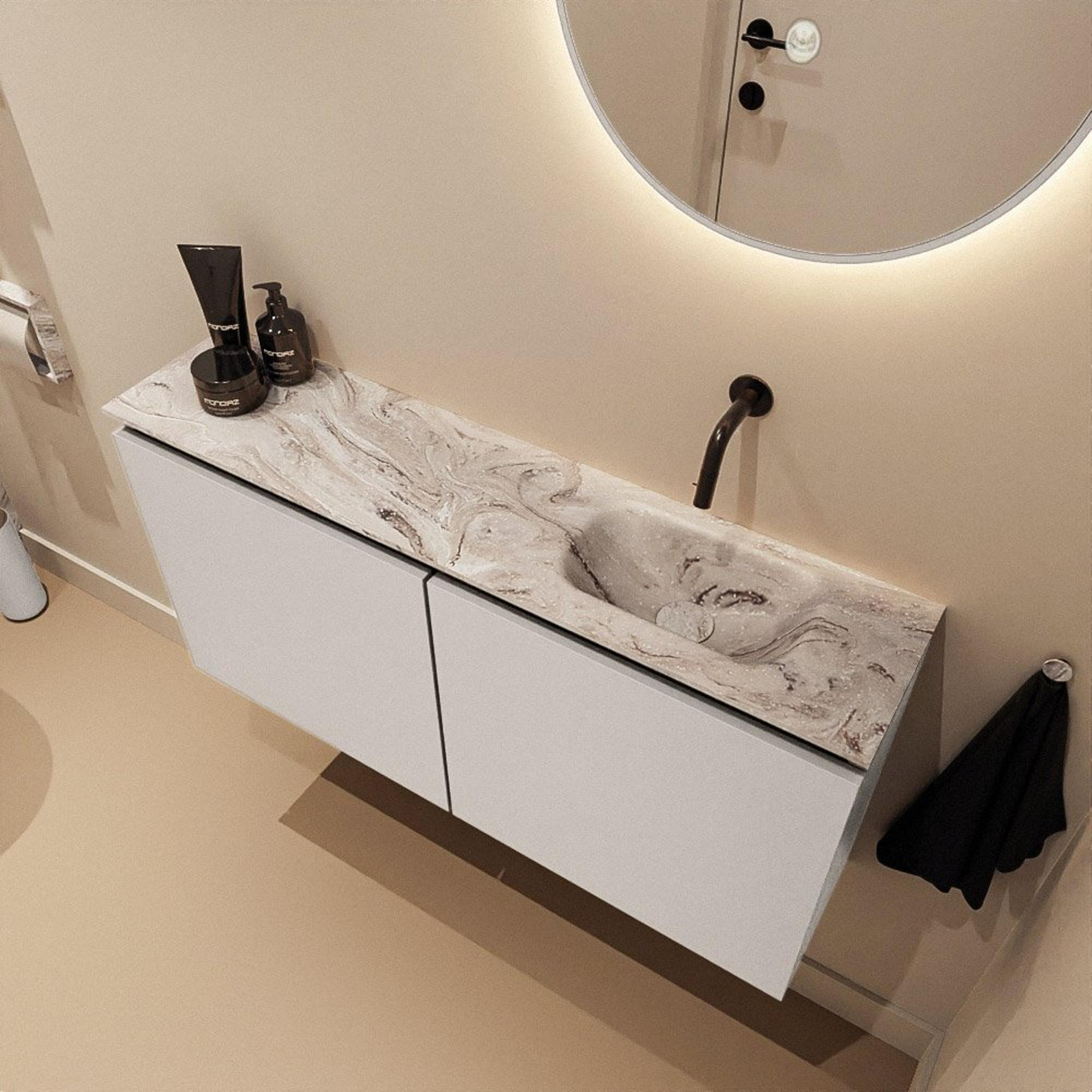 MONDIAZ TURE-DLUX 100cm toiletmeubel Linen. EDEN wastafel Glace positie rechts. Zonder kraangat.