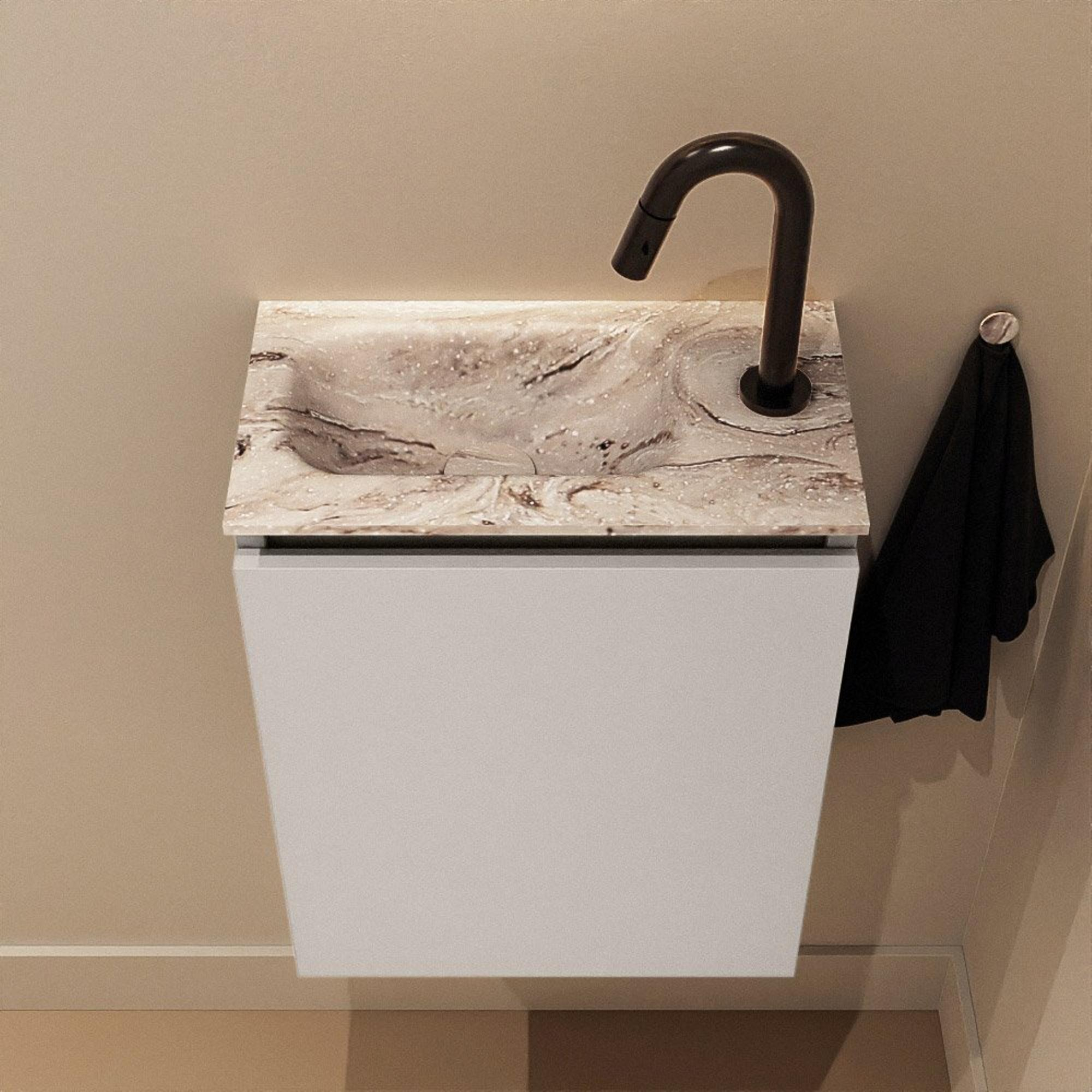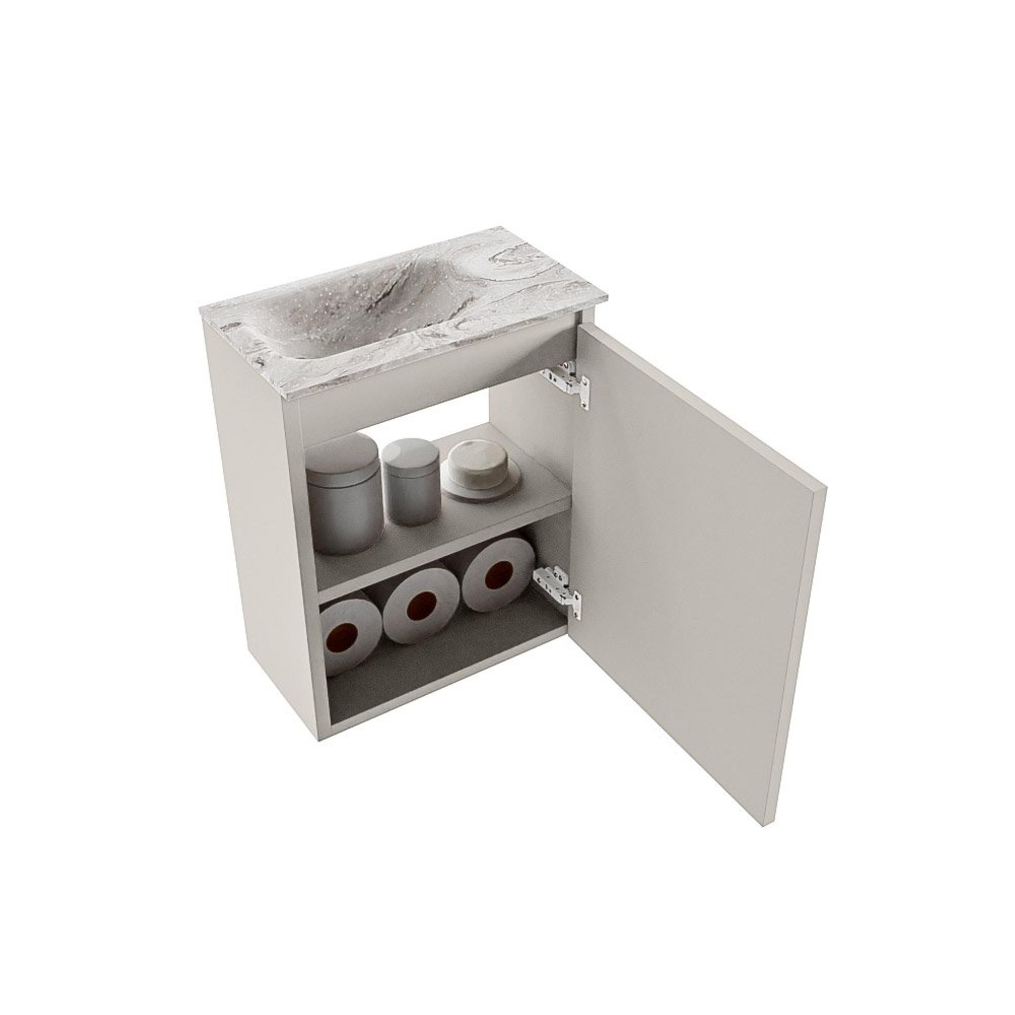 MONDIAZ TURE-DLUX 40cm toiletmeubel Linen. EDEN wastafel Glace positie links. Met 1 kraangat.