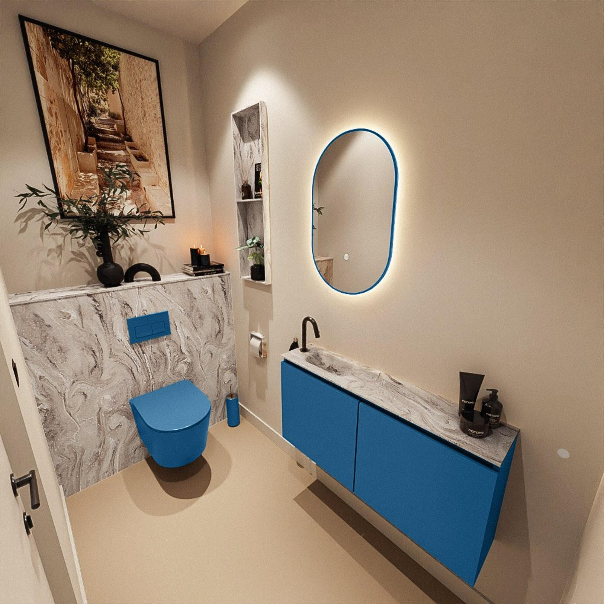 MONDIAZ TURE-DLUX 100cm toiletmeubel Jeans. EDEN wastafel Glace positie links. Met 1 kraangat.