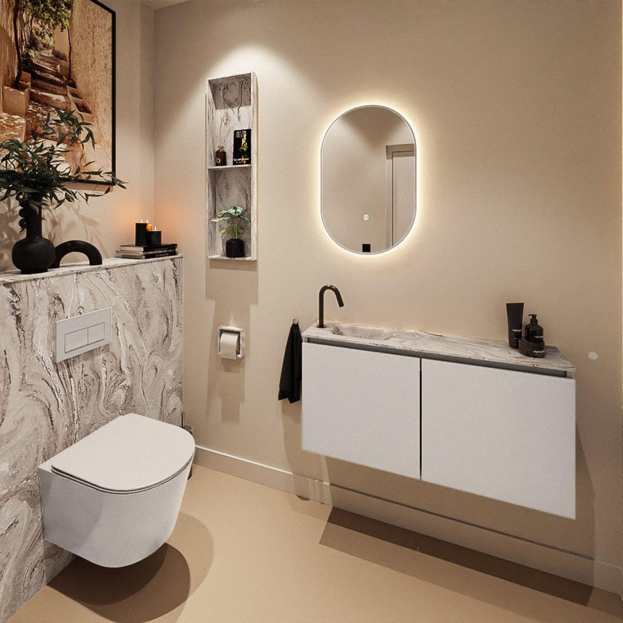 MONDIAZ TURE-DLUX 100cm toiletmeubel Linen. EDEN wastafel Glace positie links. Met 1 kraangat.