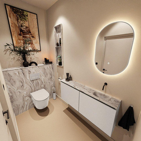 MONDIAZ TURE-DLUX 120cm toiletmeubel Linen. EDEN wastafel Glace positie rechts. Zonder kraangat.