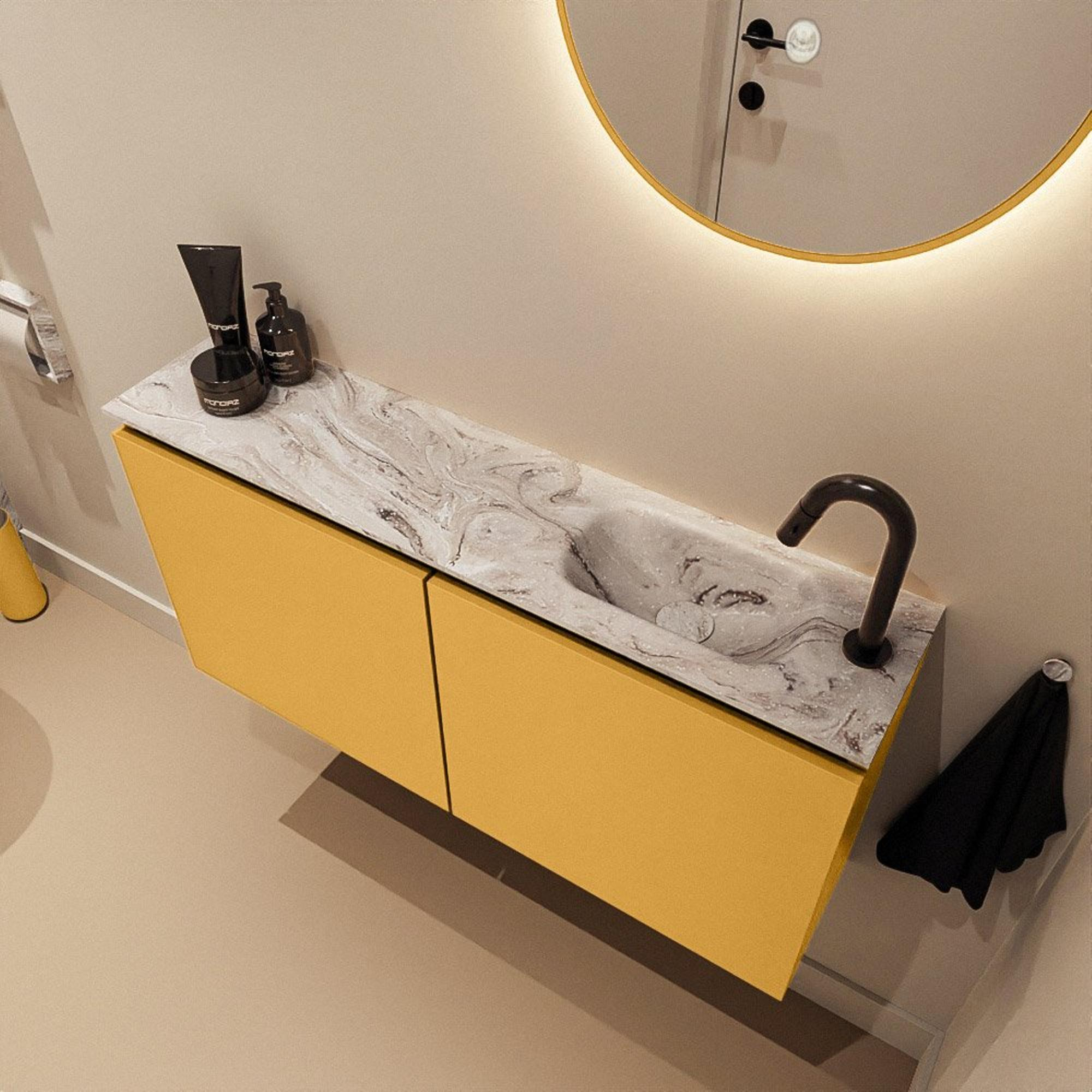 MONDIAZ TURE-DLUX 100cm toiletmeubel Ocher. EDEN wastafel Glace positie rechts. Met 1 kraangat.