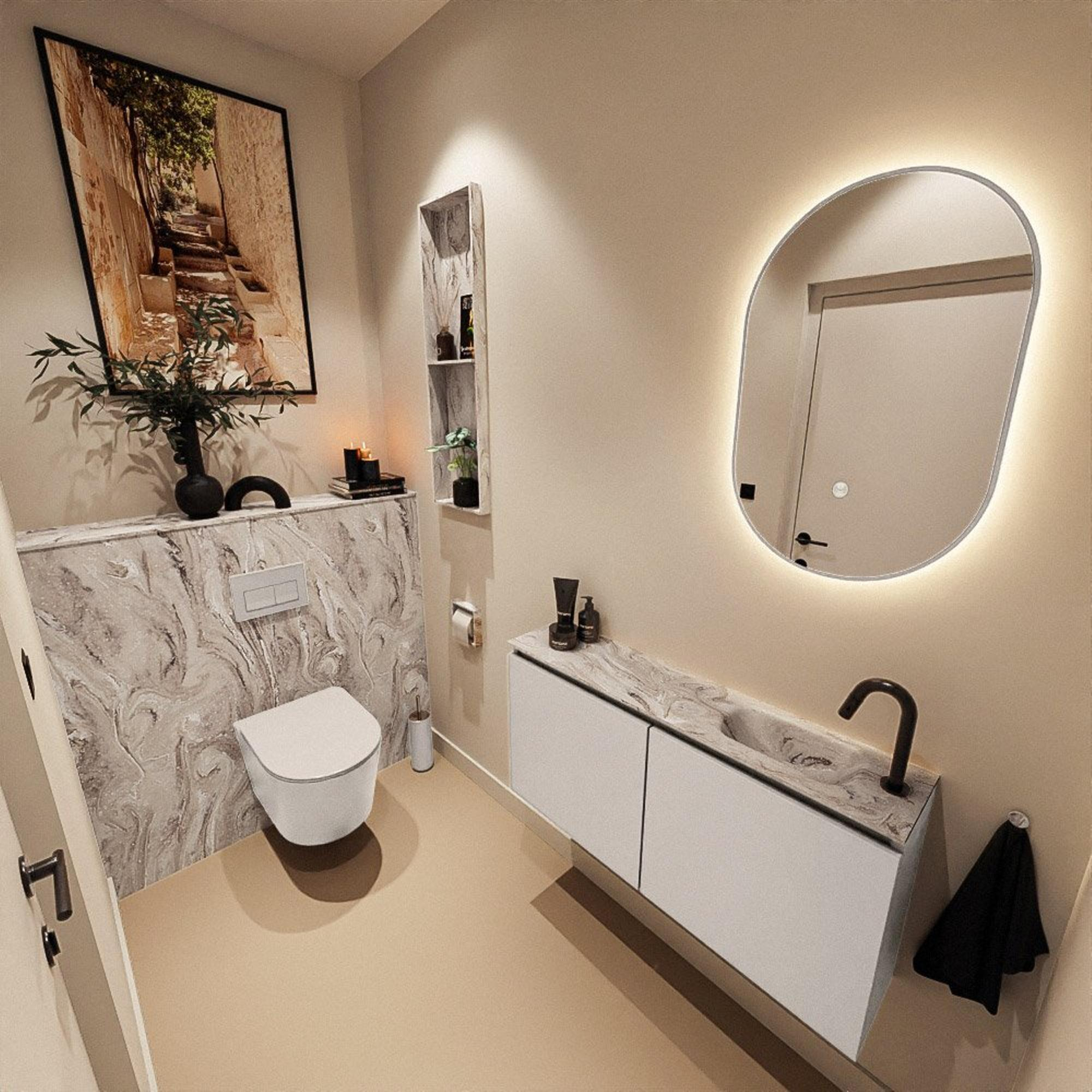 MONDIAZ TURE-DLUX 100cm toiletmeubel Linen. EDEN wastafel Glace positie rechts. Met 1 kraangat.