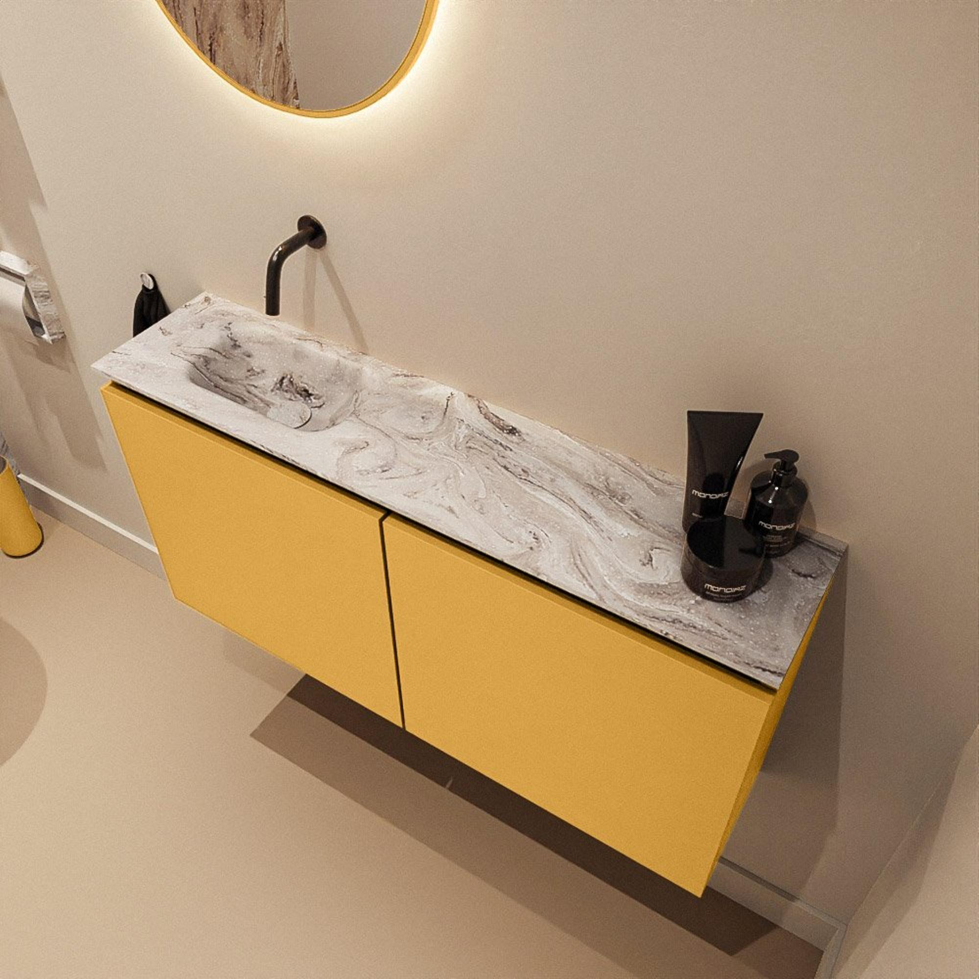MONDIAZ TURE-DLUX 100cm toiletmeubel Ocher. EDEN wastafel Glace positie links. Zonder kraangat.