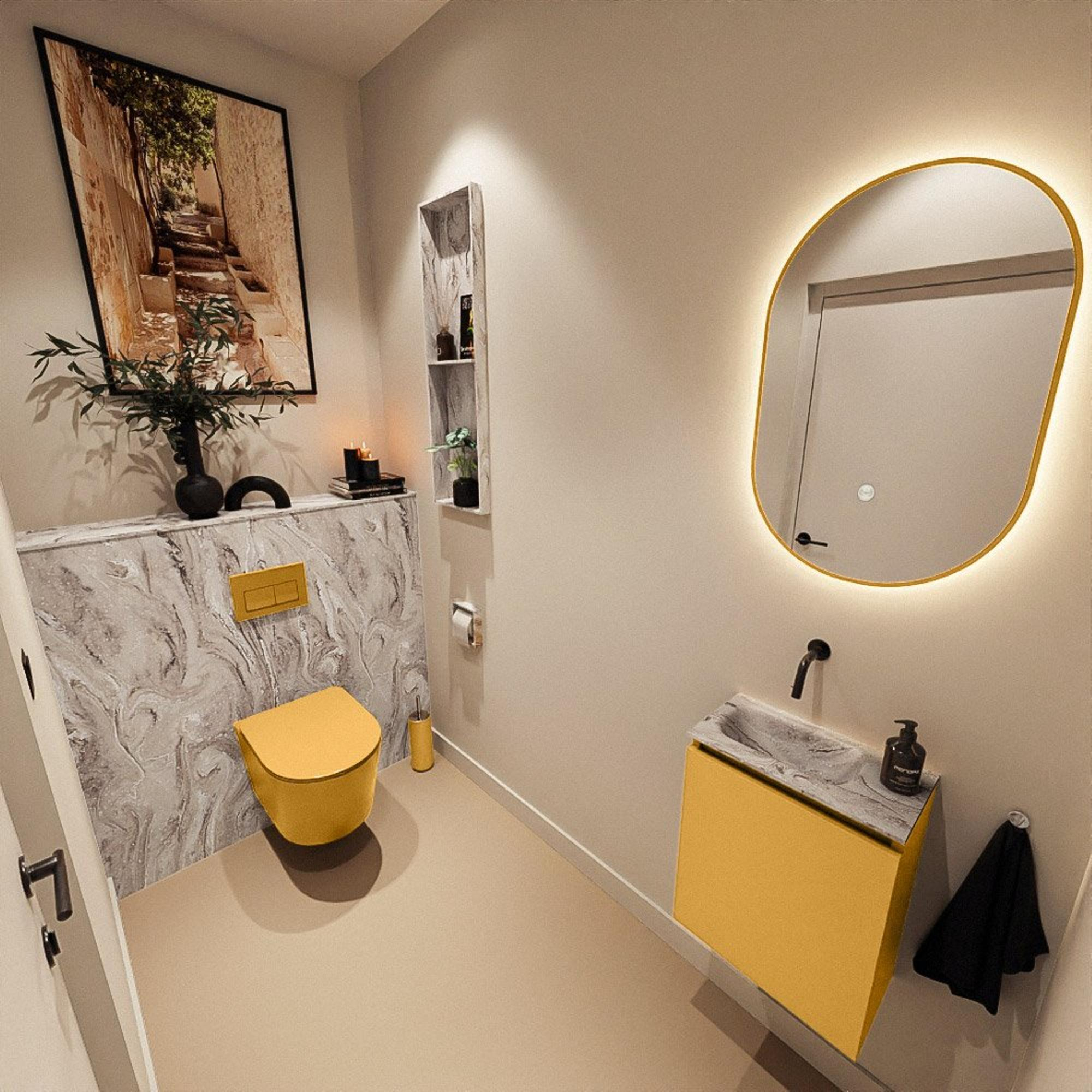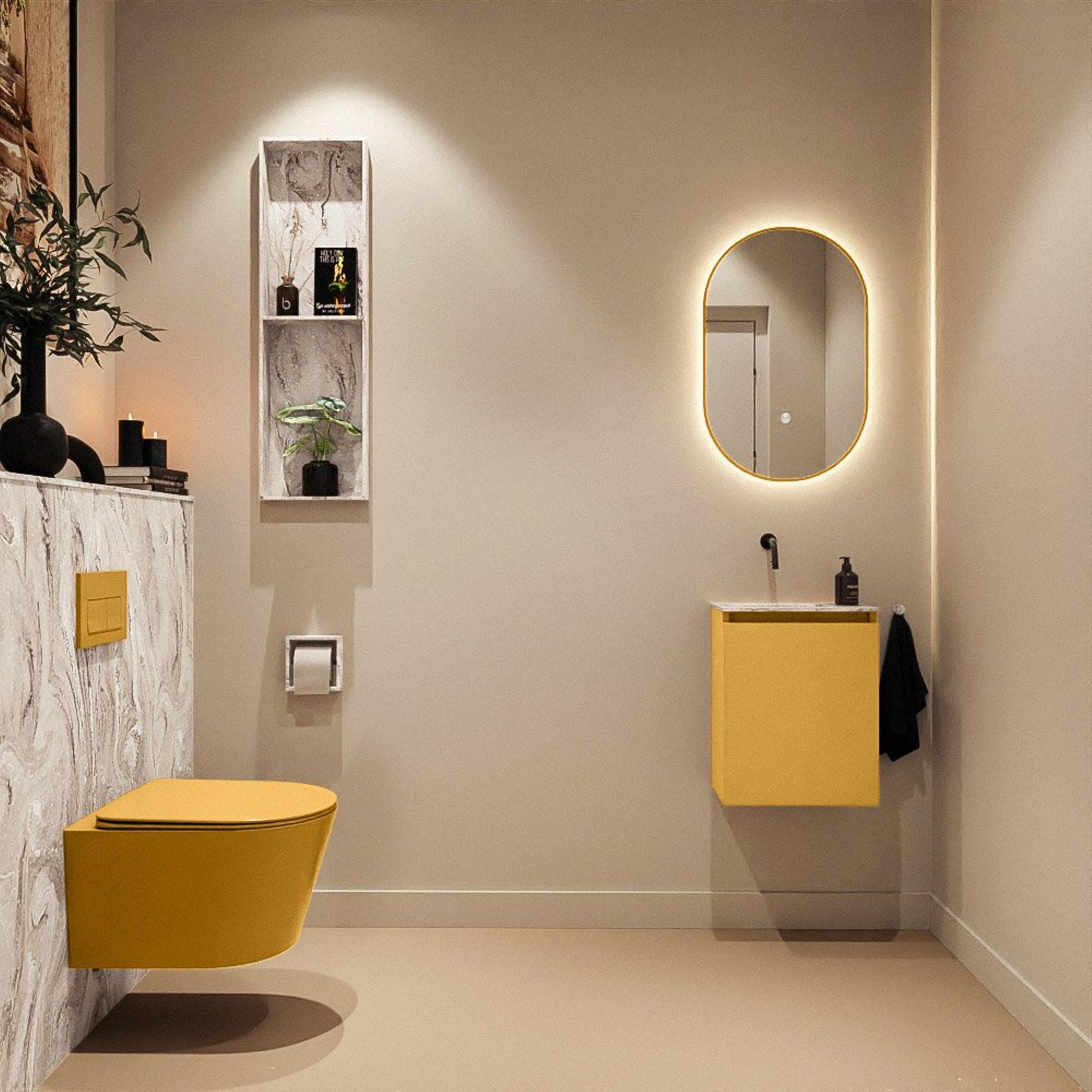 MONDIAZ TURE-DLUX 40cm toiletmeubel Ocher. EDEN wastafel Glace positie links. Zonder kraangat.