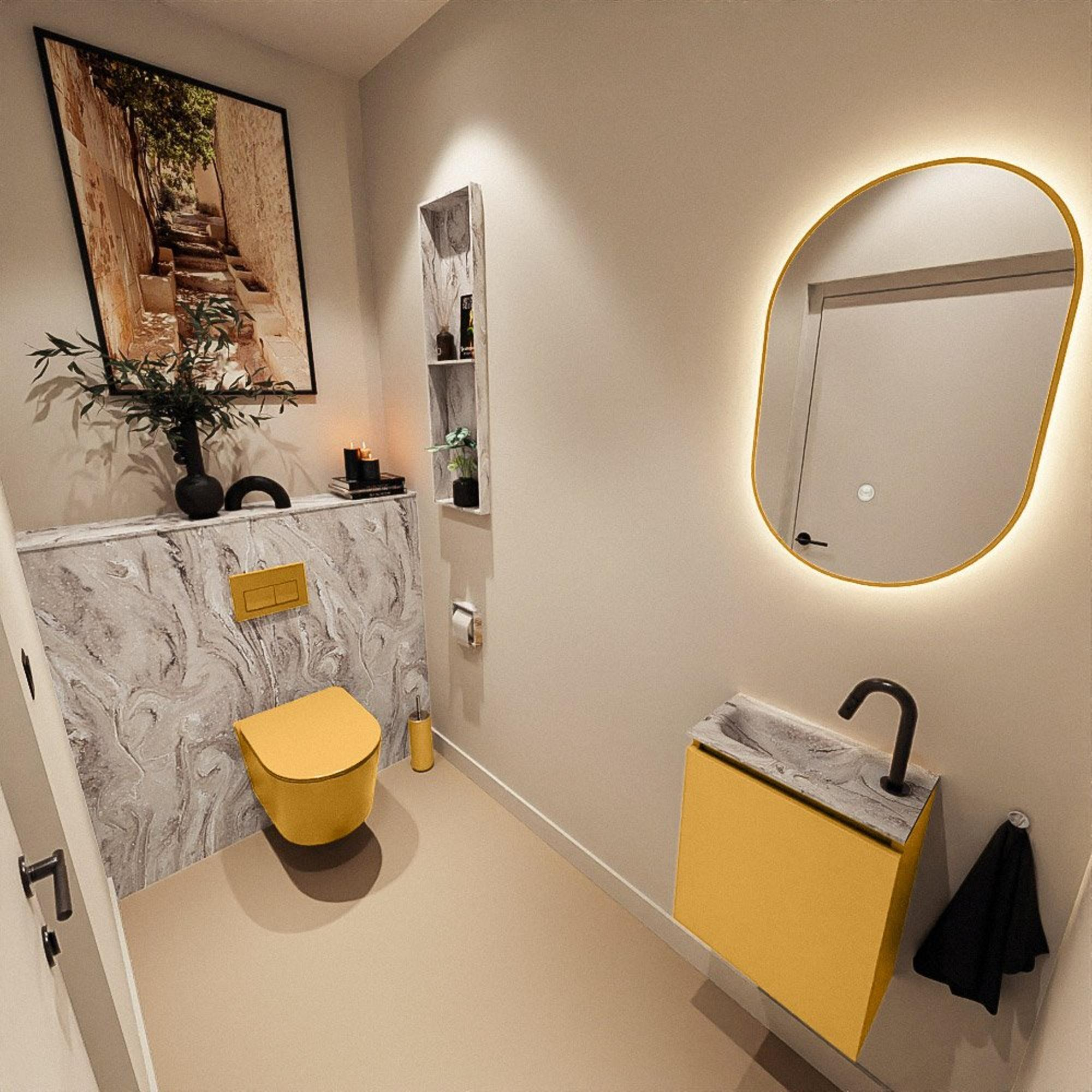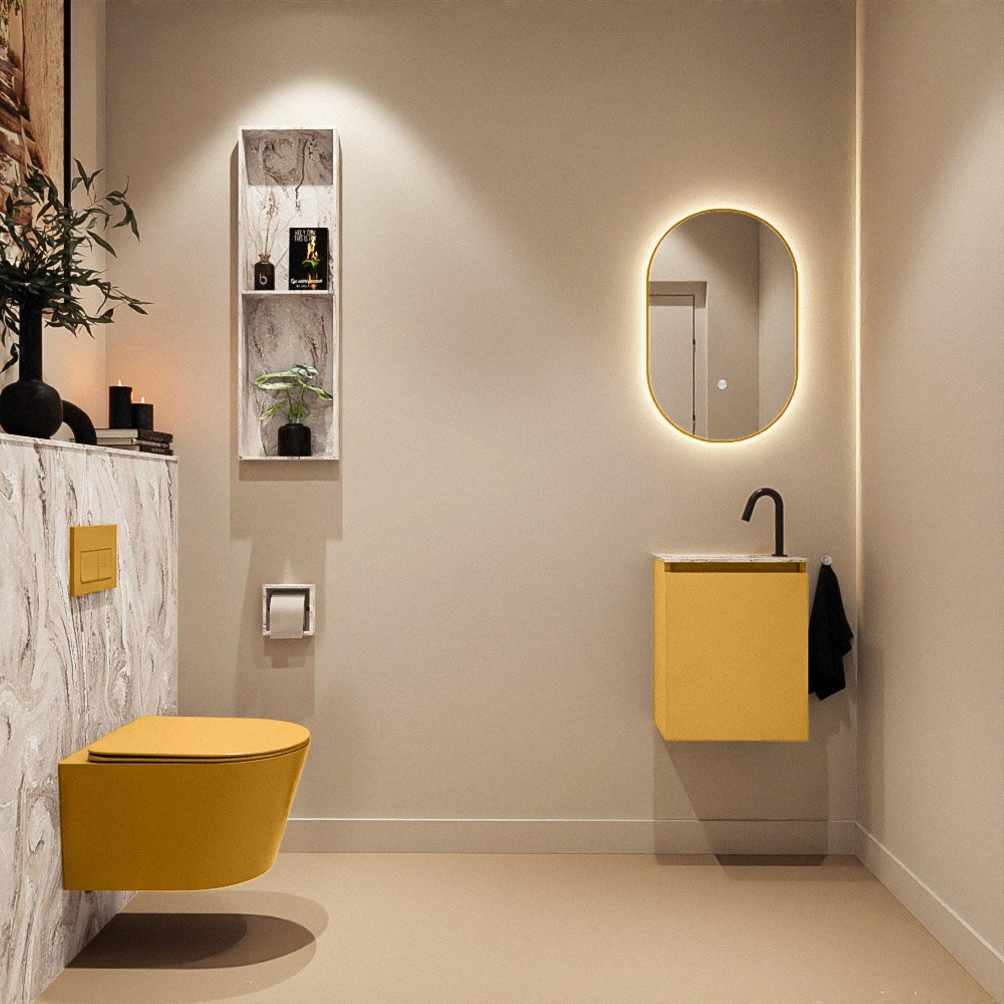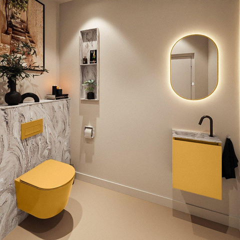 MONDIAZ TURE-DLUX 40cm toiletmeubel Ocher. EDEN wastafel Glace positie links. Met 1 kraangat.