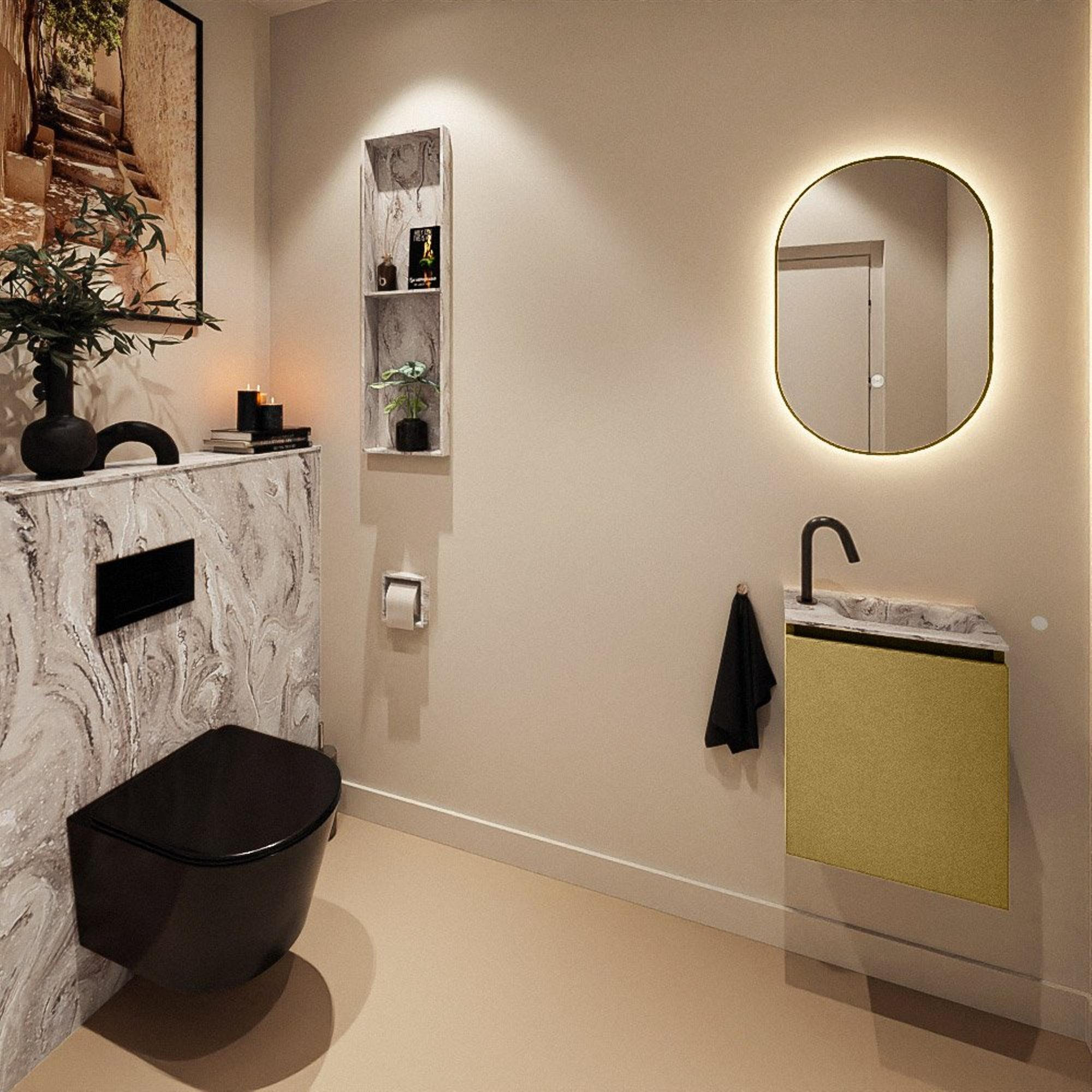 MONDIAZ TURE-DLUX 40cm toiletmeubel Oro. EDEN wastafel Glace positie rechts. Met 1 kraangat.