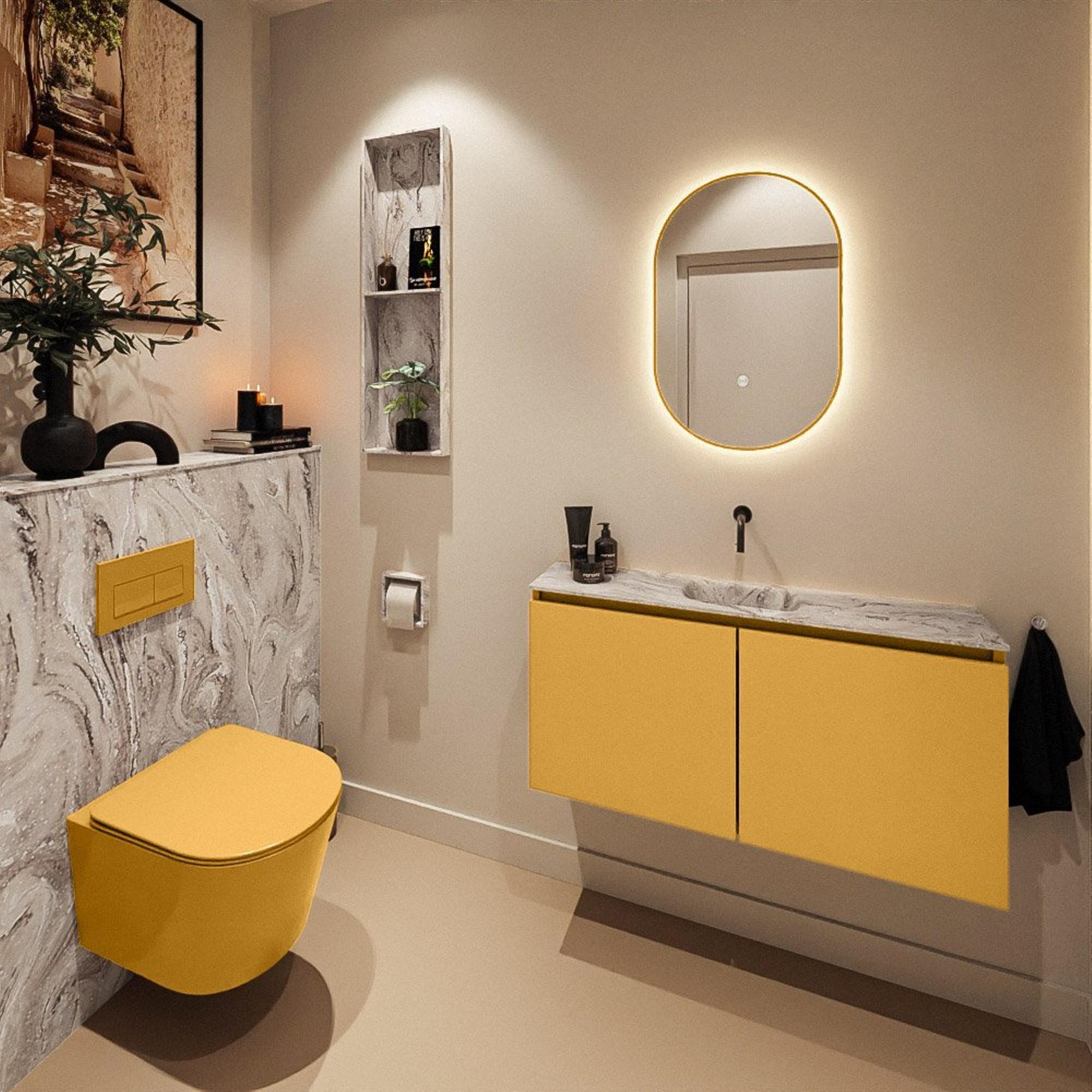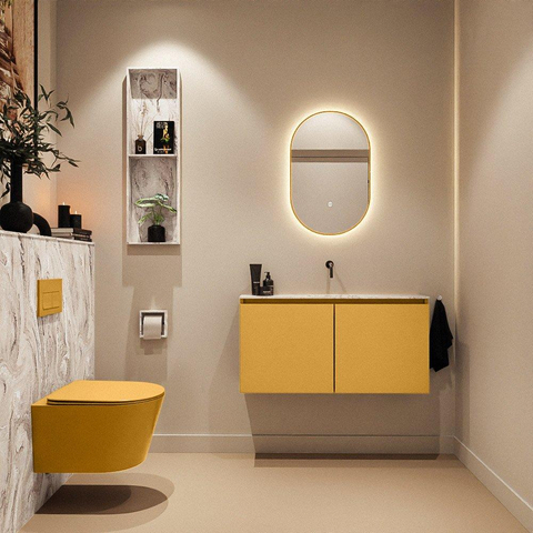MONDIAZ TURE-DLUX 100cm toiletmeubel Ocher. EDEN wastafel Glace positie midden. Zonder kraangat.