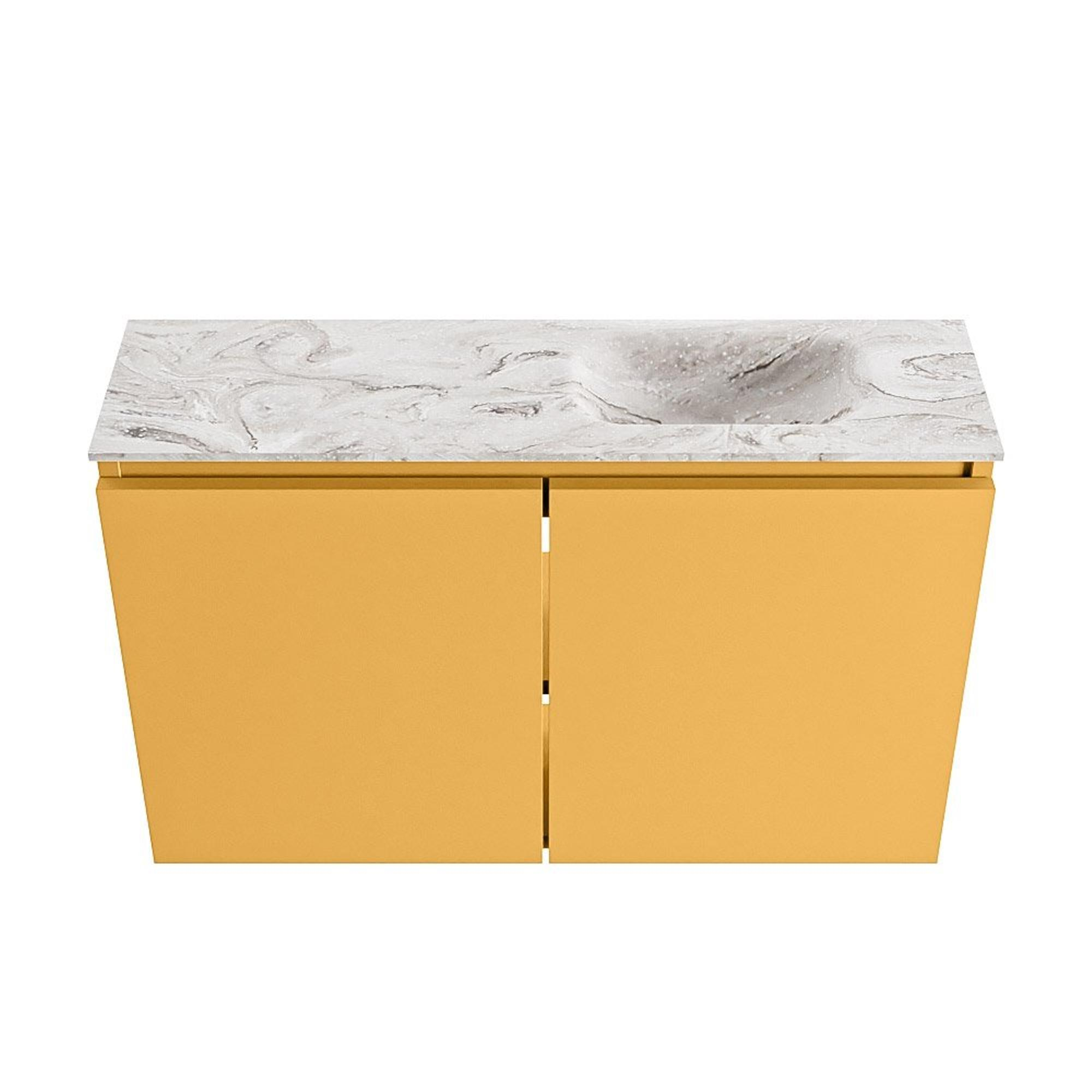 MONDIAZ TURE-DLUX 80cm toiletmeubel Ocher. EDEN wastafel Glace positie rechts. Met 1 kraangat.