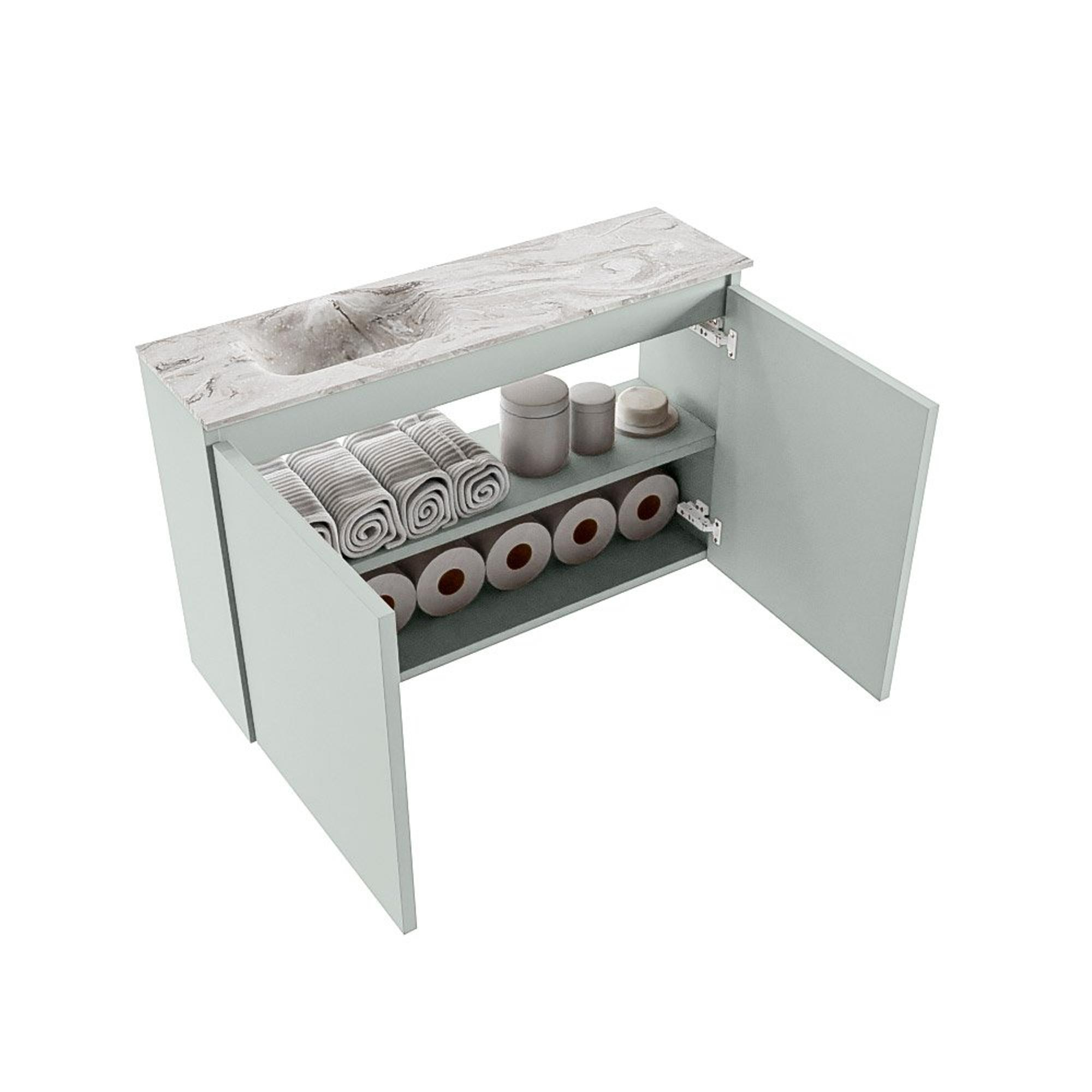 MONDIAZ TURE-DLUX 80cm toiletmeubel Greey. EDEN wastafel Glace positie links. Met 1 kraangat.