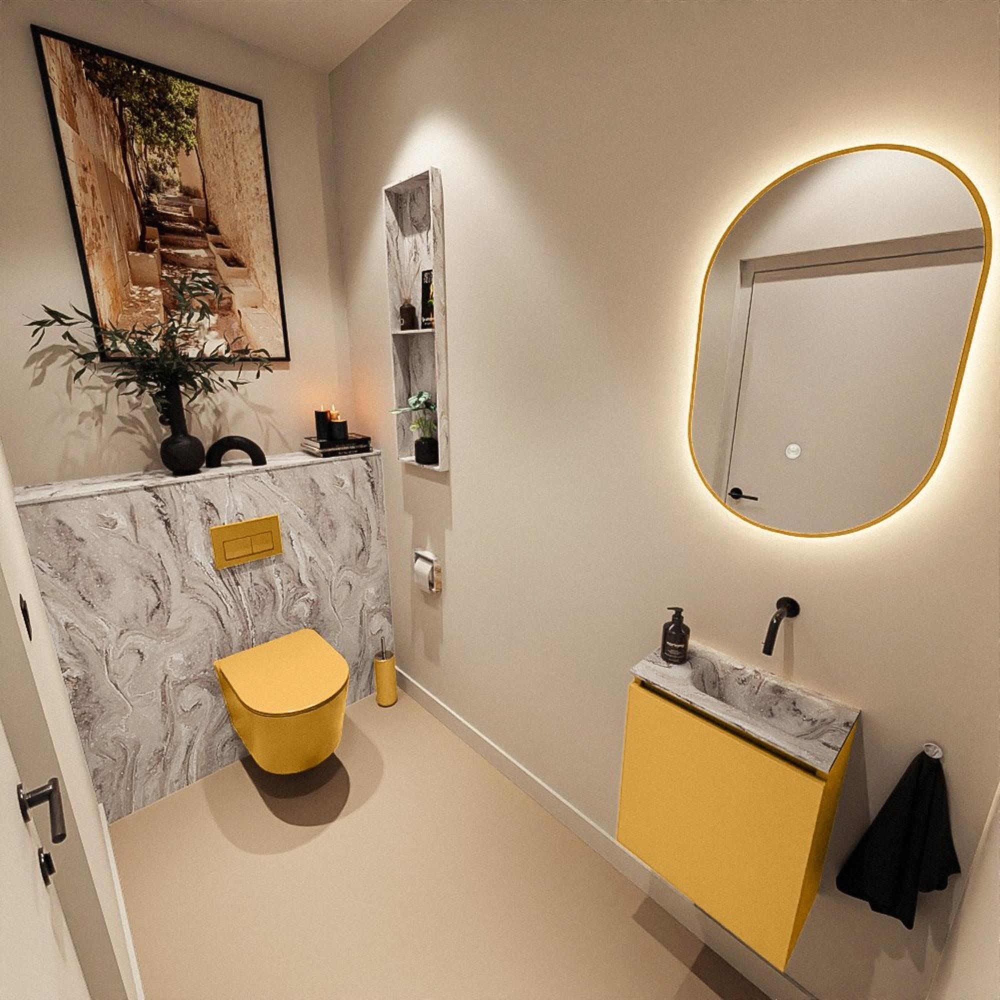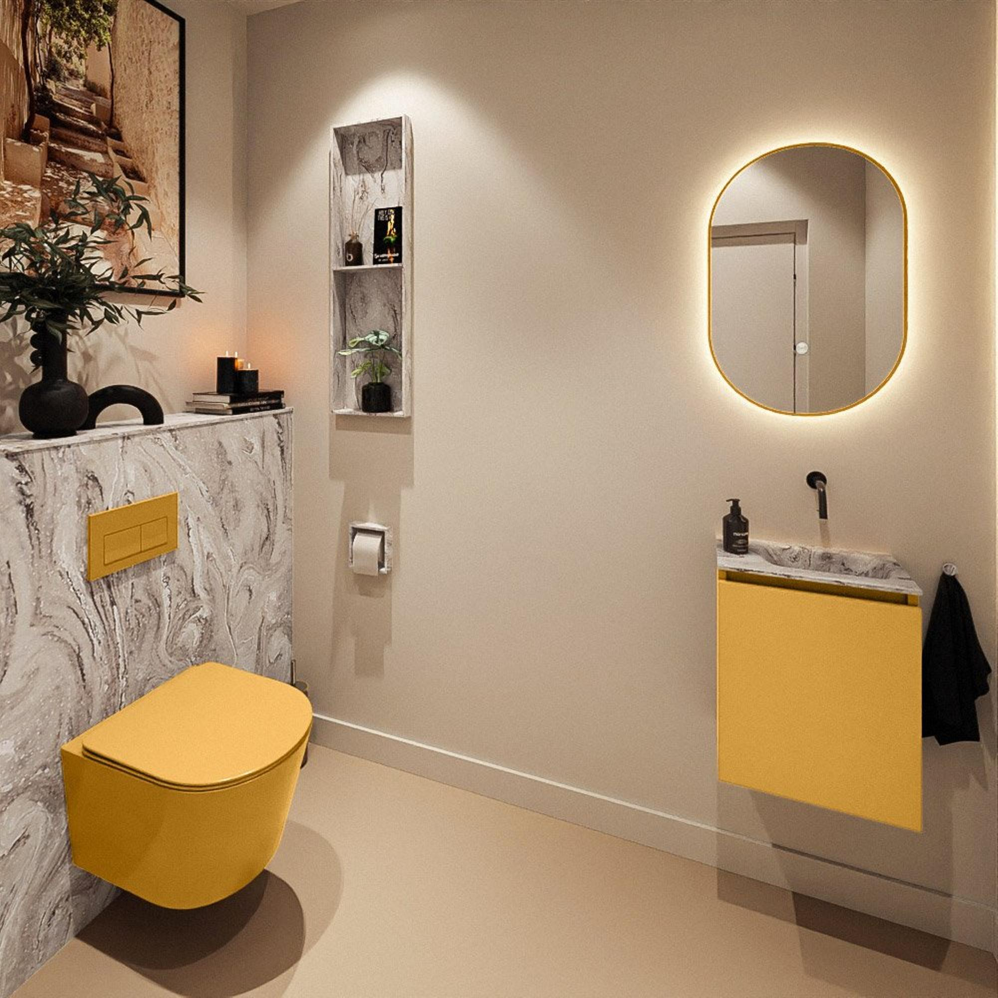 MONDIAZ TURE-DLUX 40cm toiletmeubel Ocher. EDEN wastafel Glace positie rechts. Zonder kraangat.