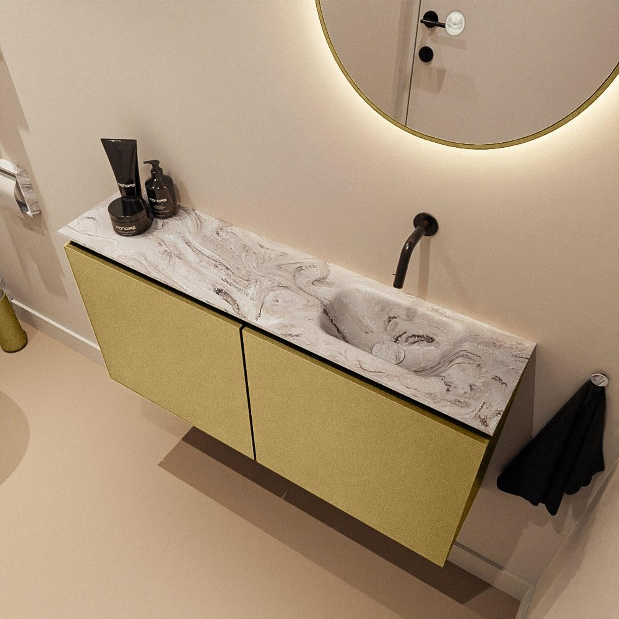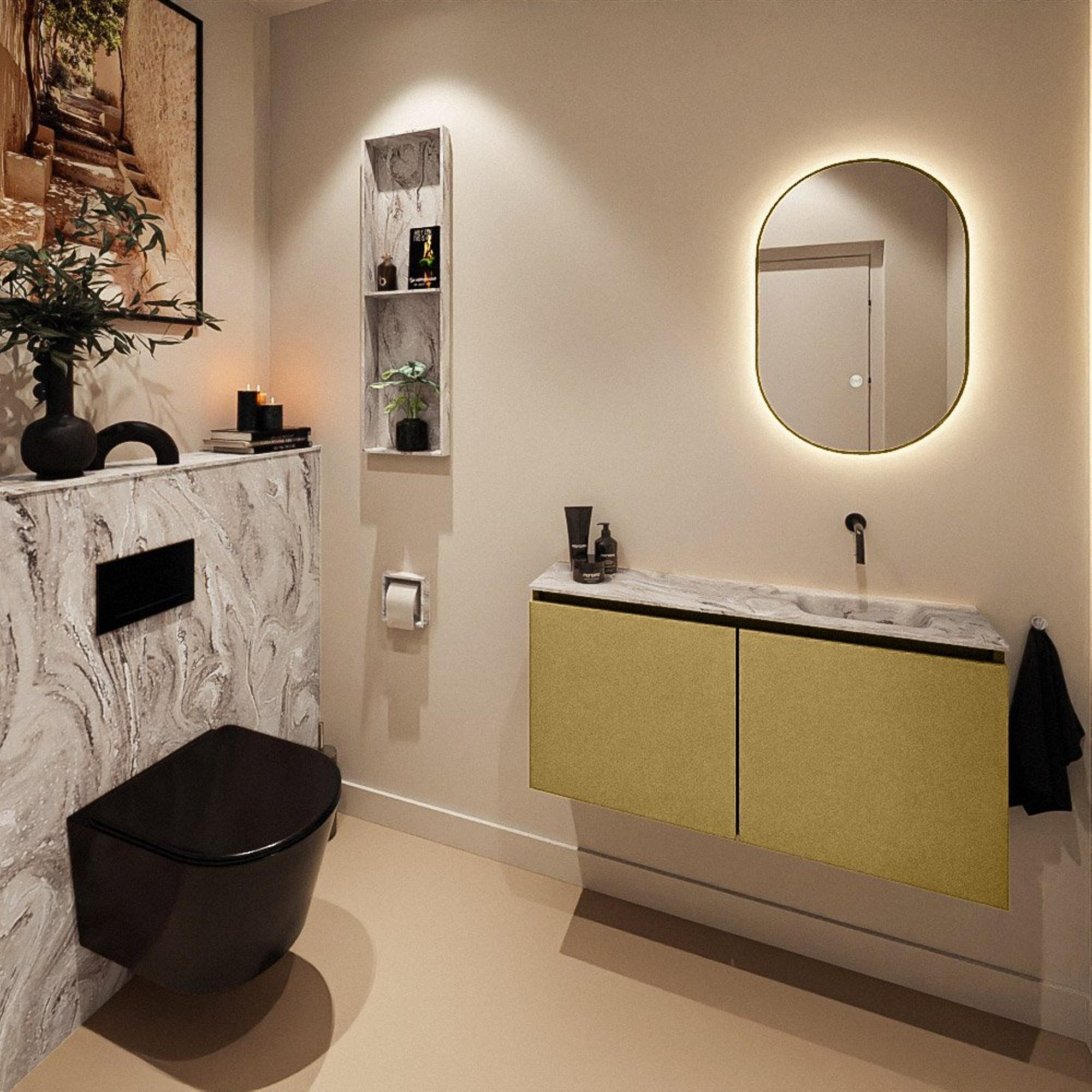 MONDIAZ TURE-DLUX 100cm toiletmeubel Oro. EDEN wastafel Glace positie rechts. Zonder kraangat.