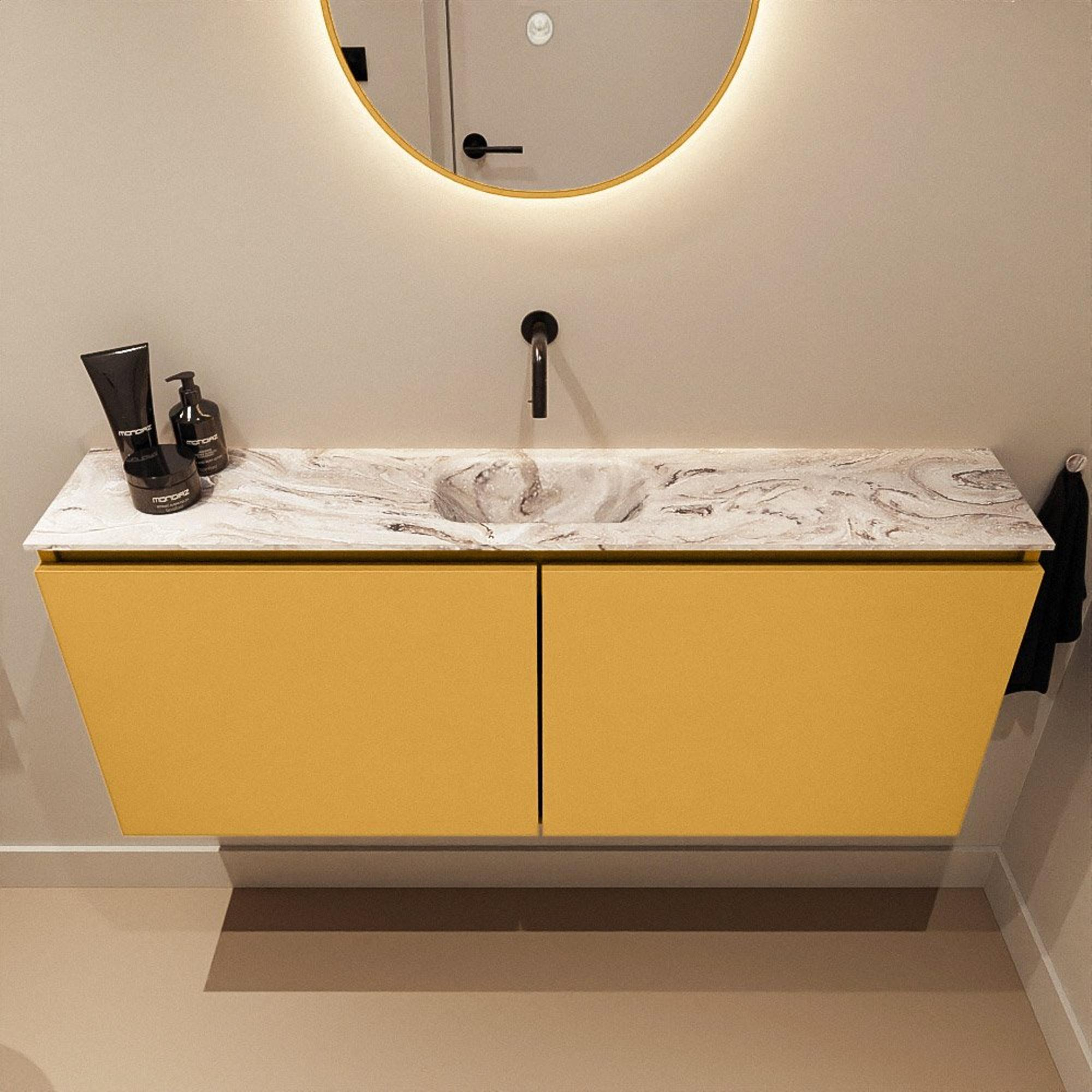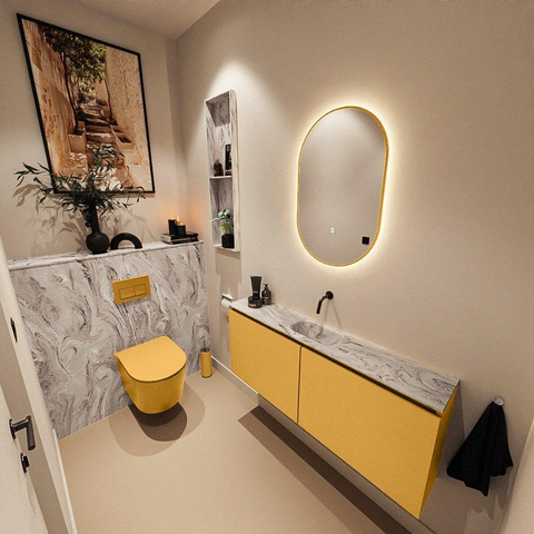 MONDIAZ TURE-DLUX 120cm toiletmeubel Ocher. EDEN wastafel Glace positie midden. Zonder kraangat.
