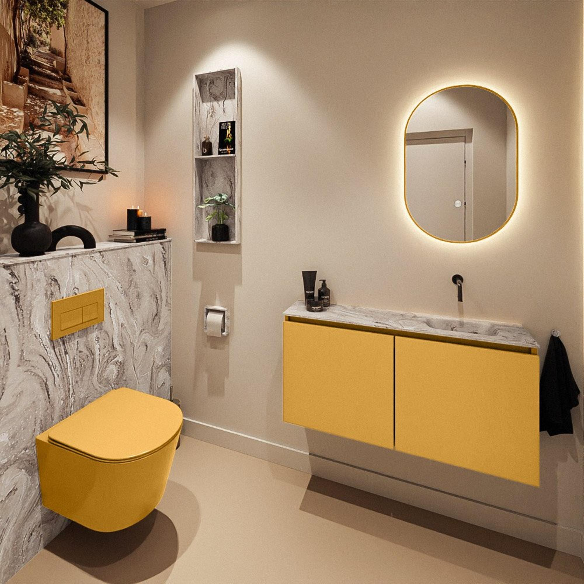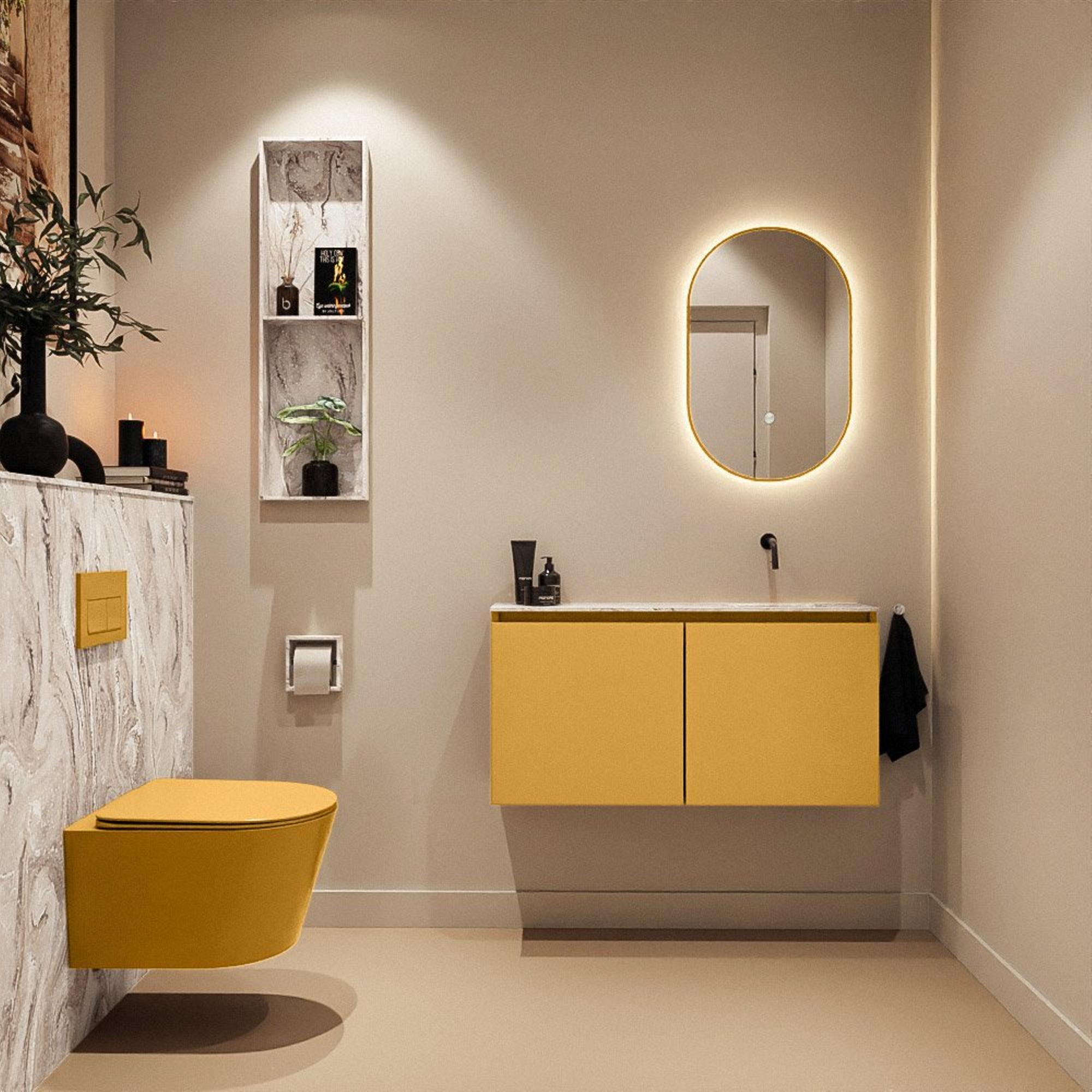 MONDIAZ TURE-DLUX 100cm toiletmeubel Ocher. EDEN wastafel Glace positie rechts. Zonder kraangat.