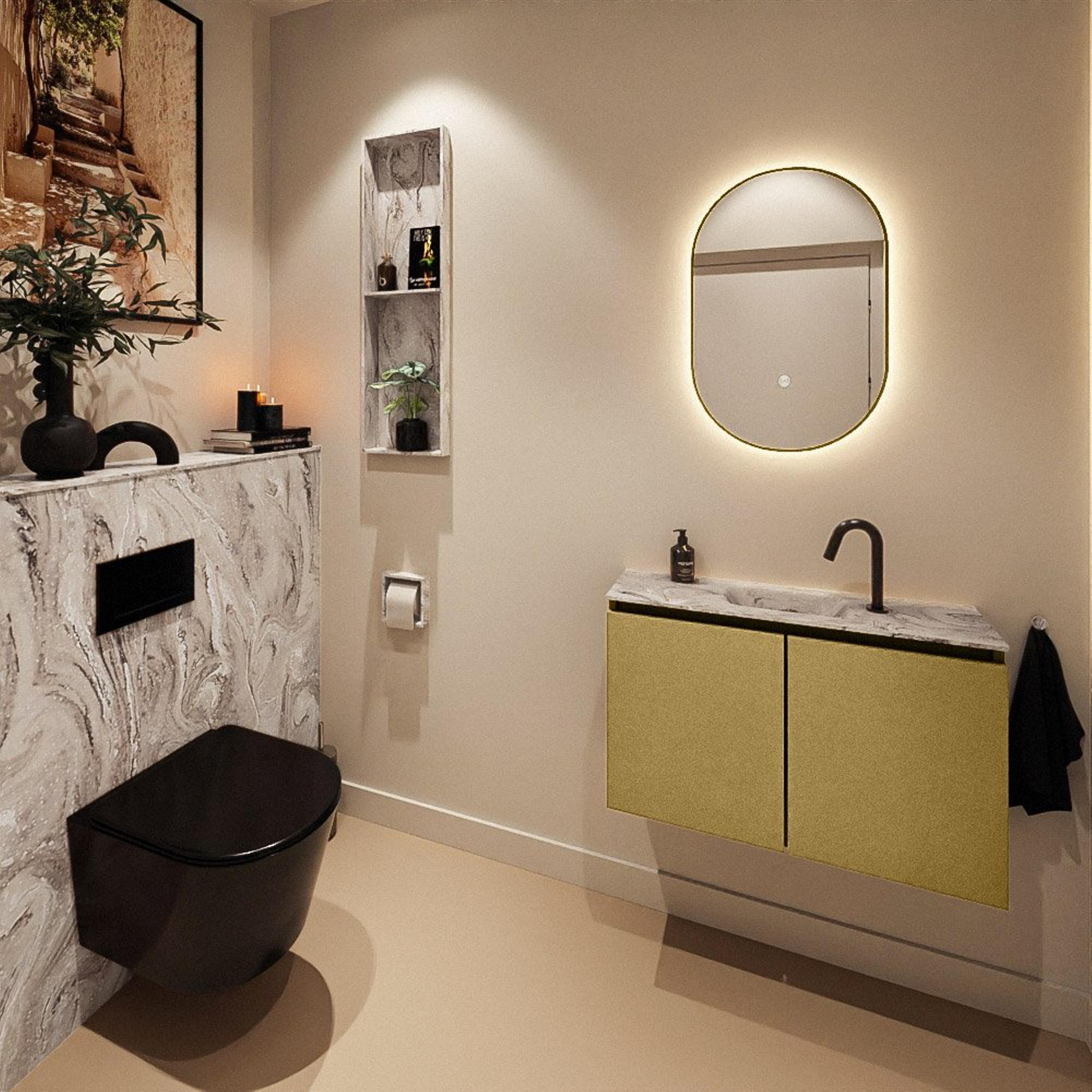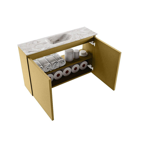 MONDIAZ TURE-DLUX 80cm toiletmeubel Oro. EDEN wastafel Glace positie midden. Met 1 kraangat.
