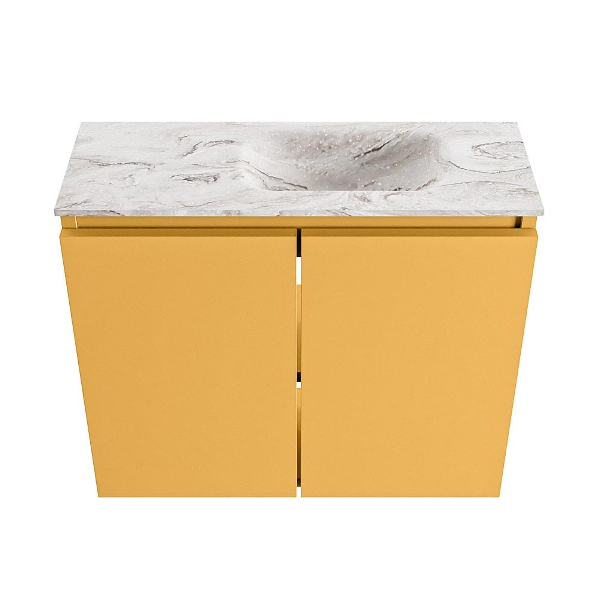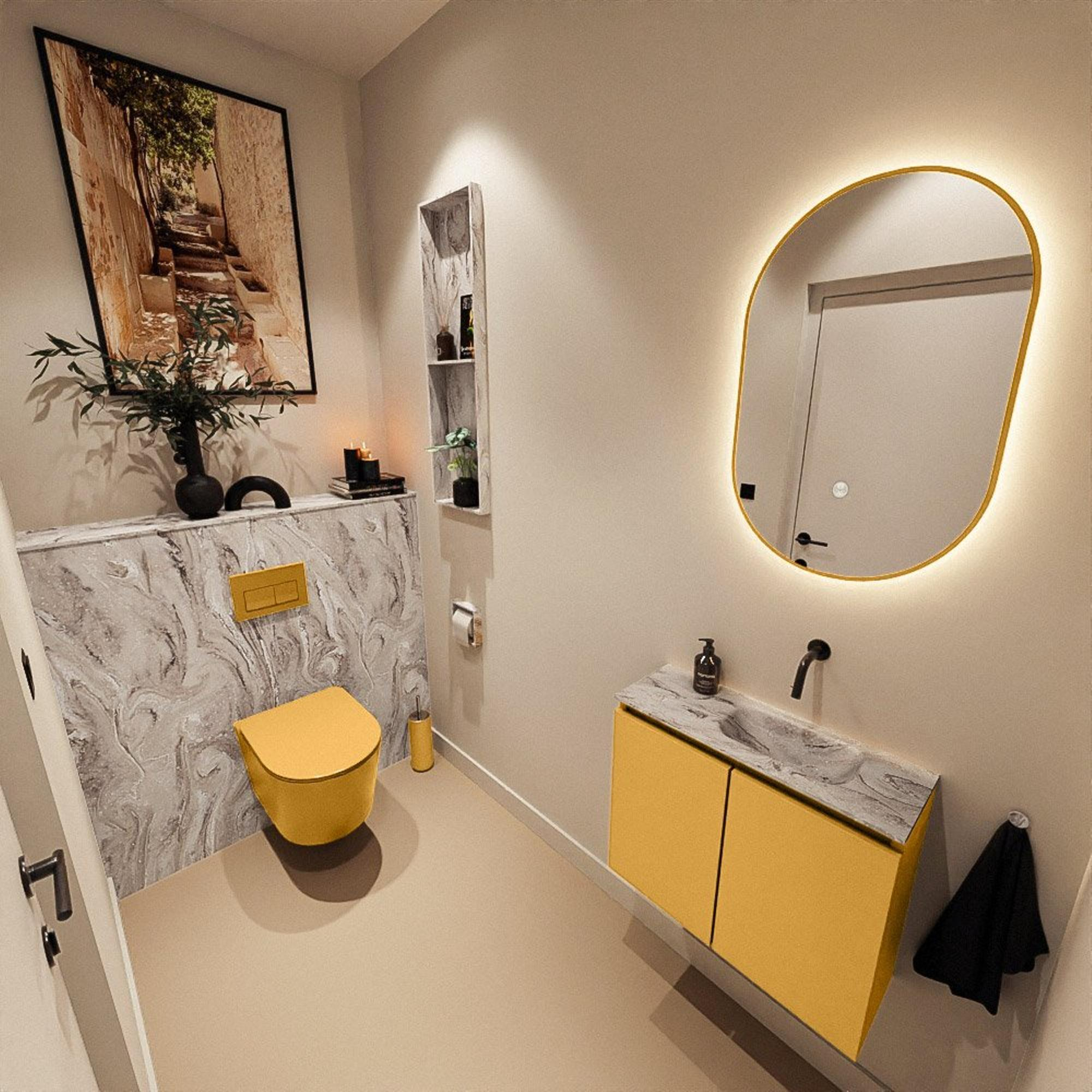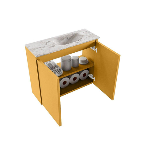 MONDIAZ TURE-DLUX 60cm toiletmeubel Ocher. EDEN wastafel Glace positie rechts. Zonder kraangat.