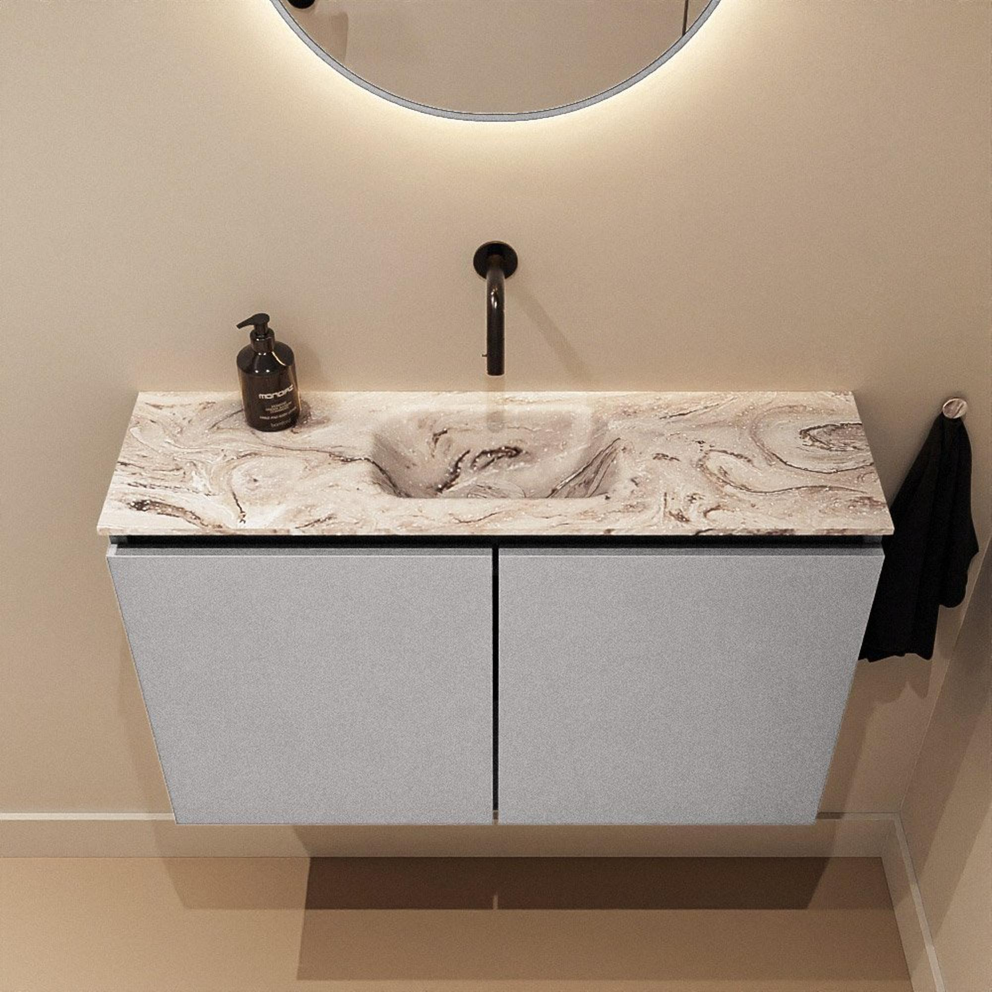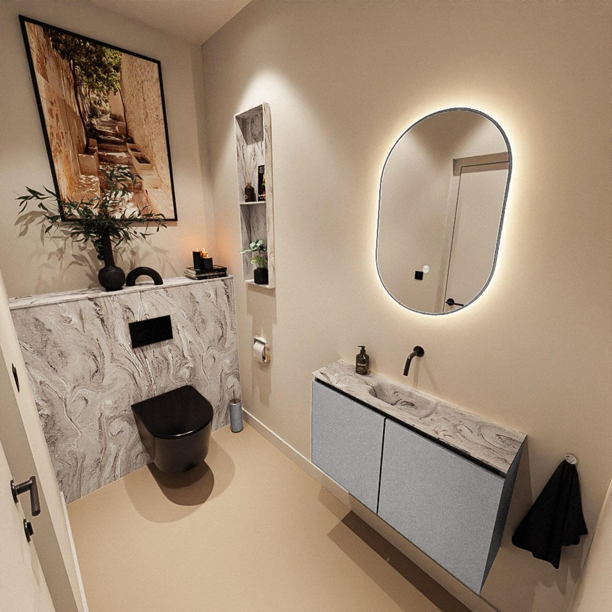 MONDIAZ TURE-DLUX 80cm toiletmeubel Plata. EDEN wastafel Glace positie midden. Zonder kraangat.