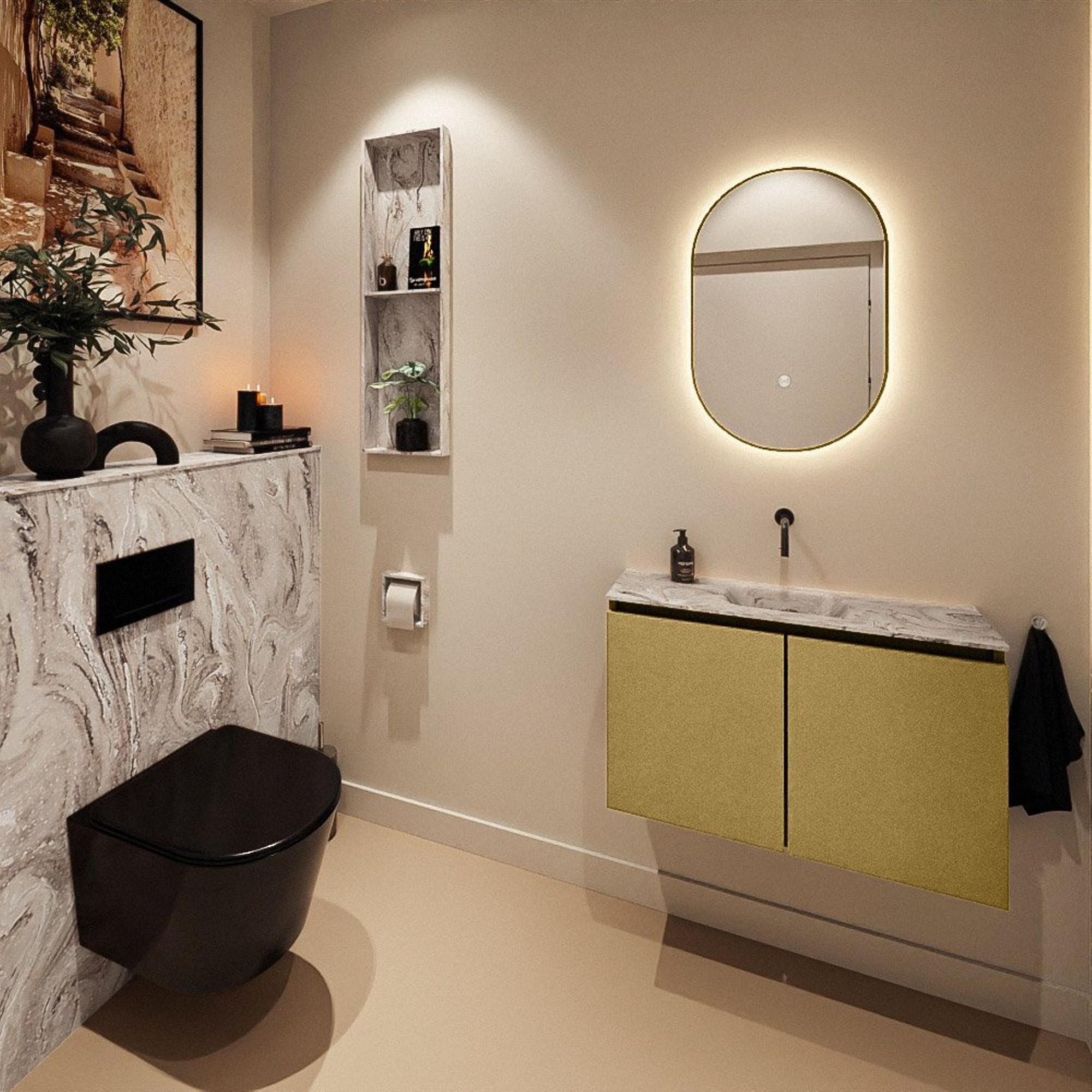 MONDIAZ TURE-DLUX 80cm toiletmeubel Oro. EDEN wastafel Glace positie midden. Zonder kraangat.