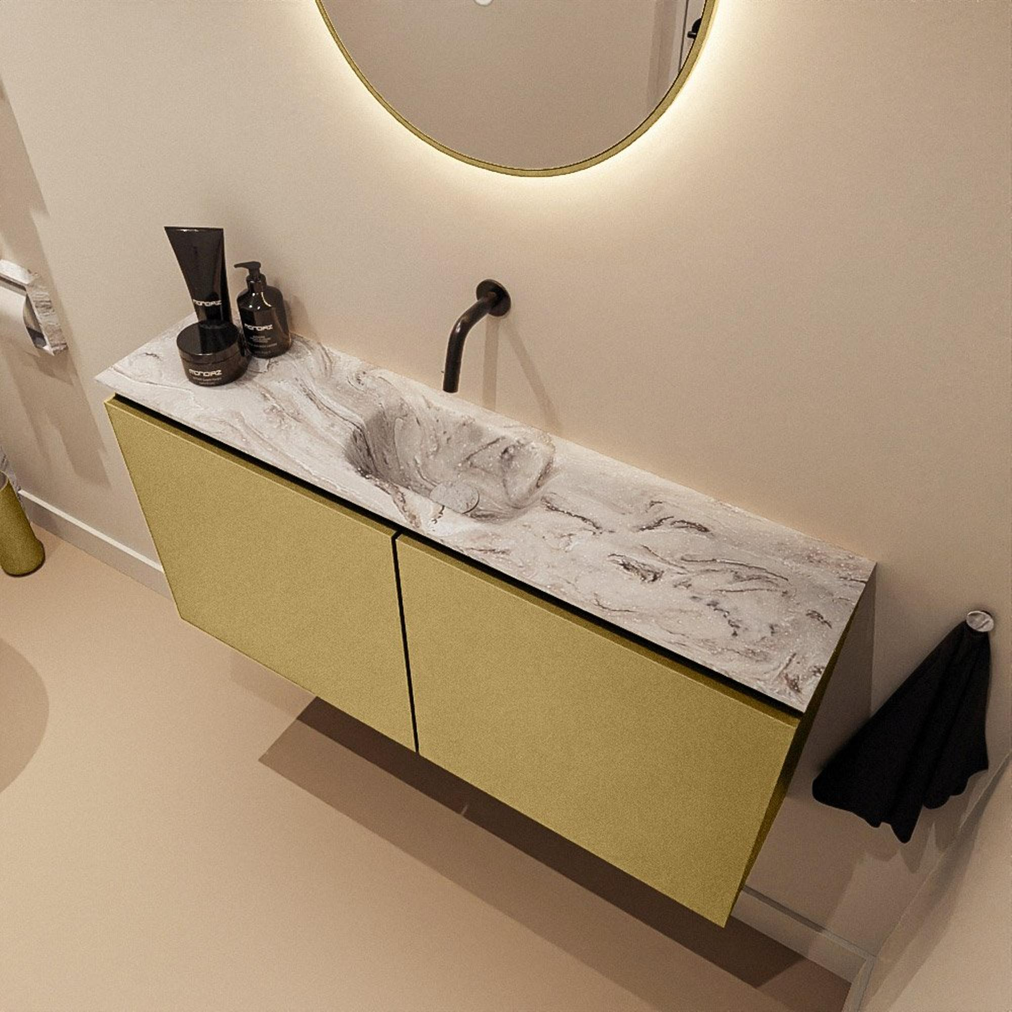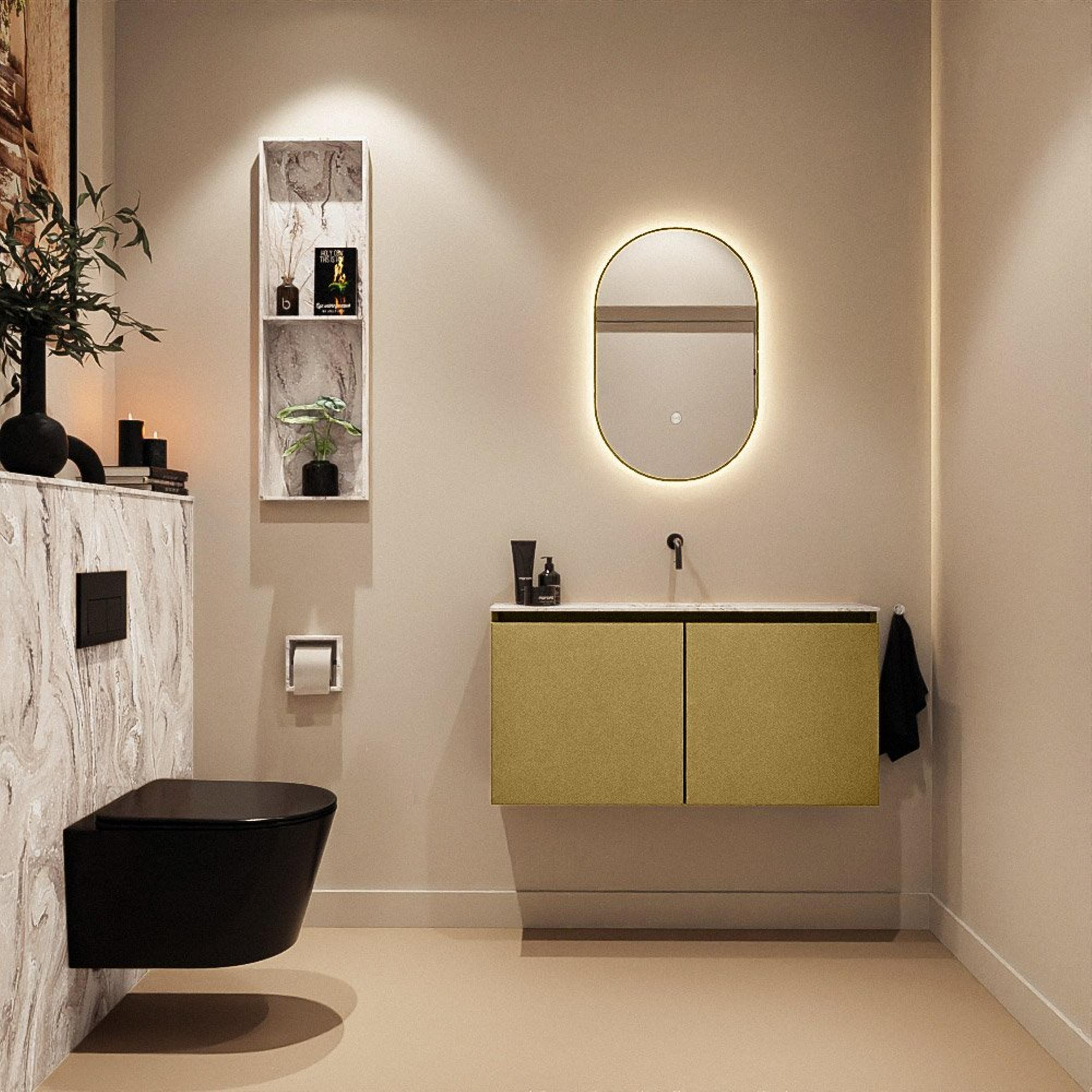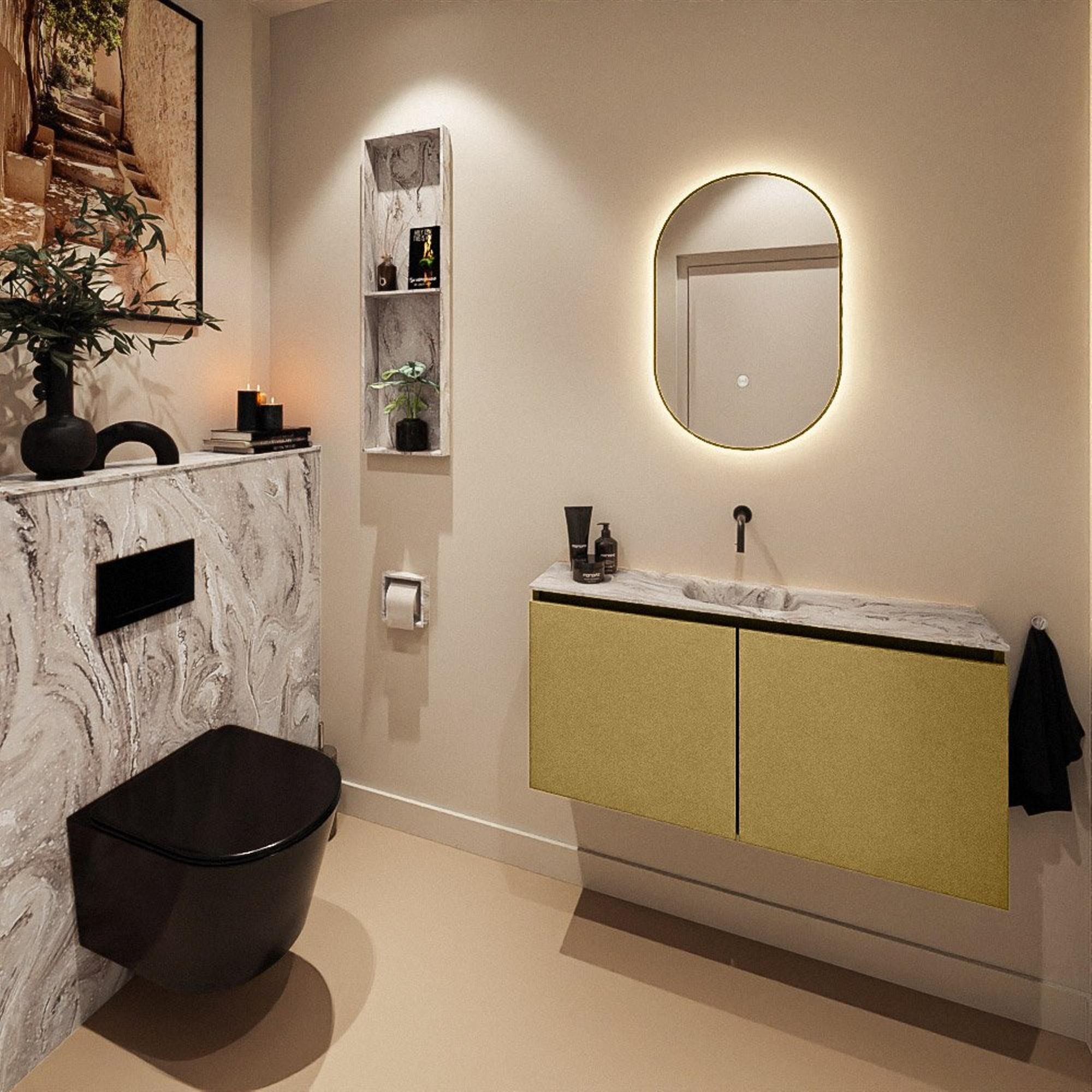 MONDIAZ TURE-DLUX 100cm toiletmeubel Oro. EDEN wastafel Glace positie midden. Zonder kraangat.