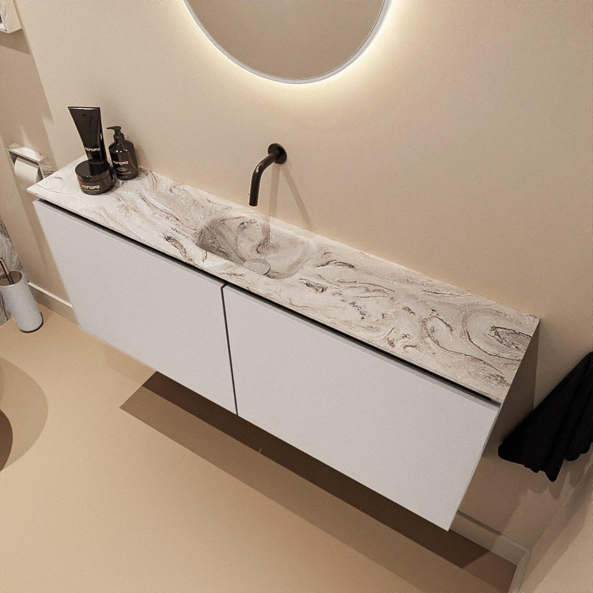 MONDIAZ TURE-DLUX 120cm toiletmeubel Linen. EDEN wastafel Glace positie midden. Zonder kraangat.
