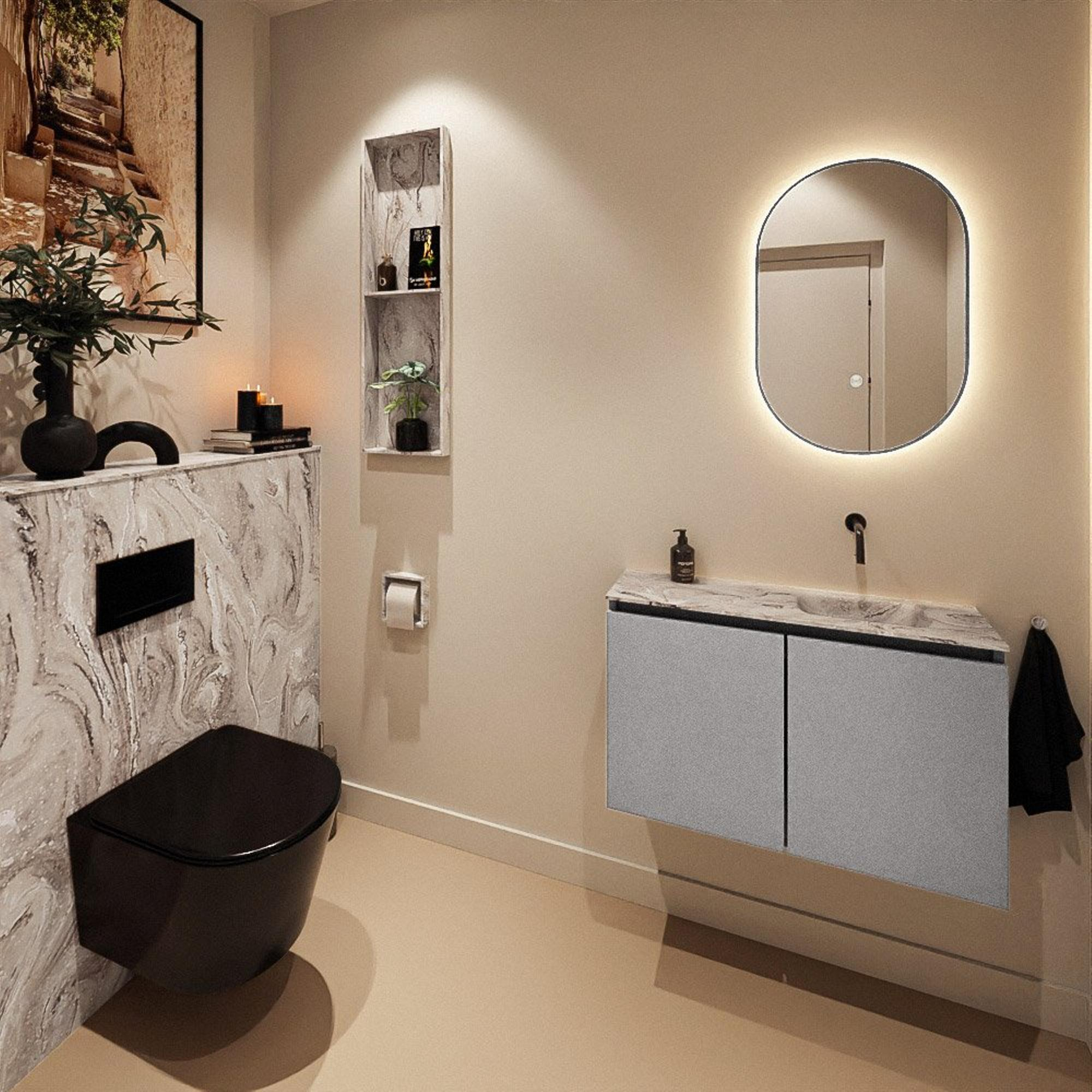MONDIAZ TURE-DLUX 80cm toiletmeubel Plata. EDEN wastafel Glace positie rechts. Zonder kraangat.