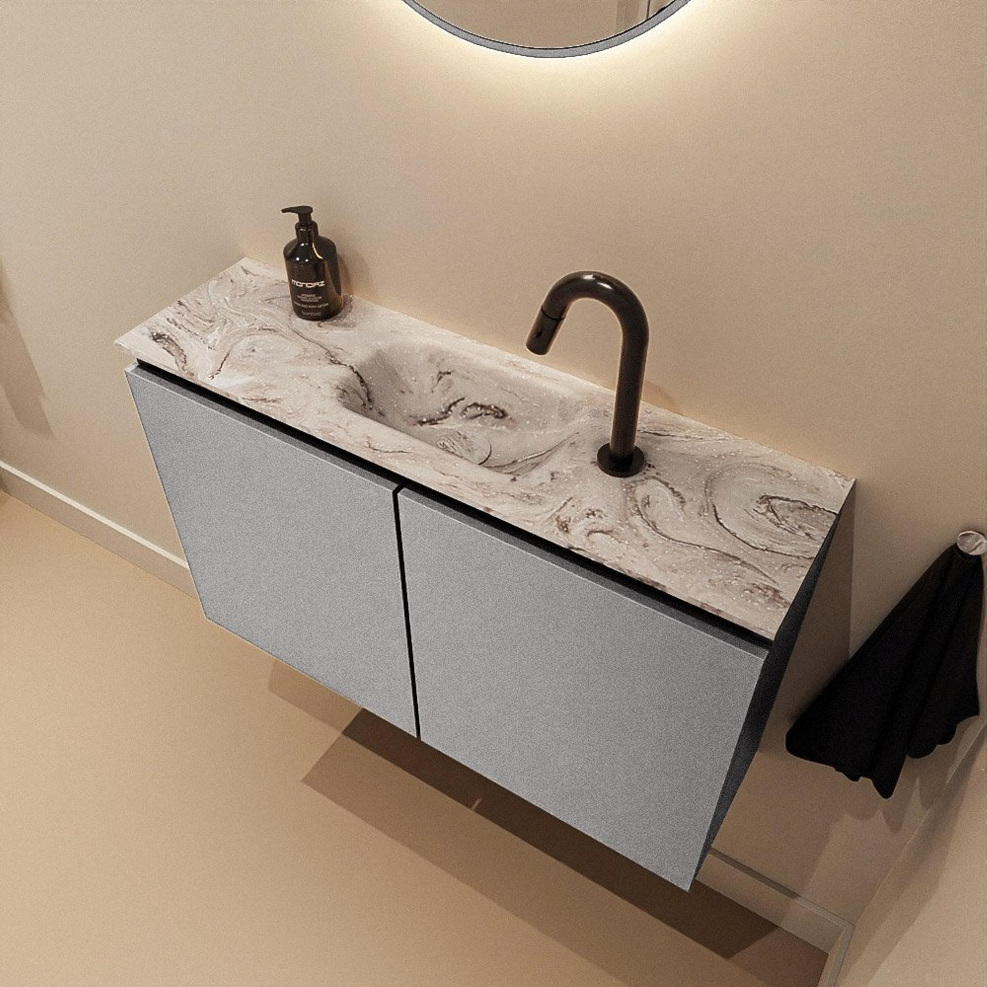 MONDIAZ TURE-DLUX 80cm toiletmeubel Plata. EDEN wastafel Glace positie midden. Met 1 kraangat.