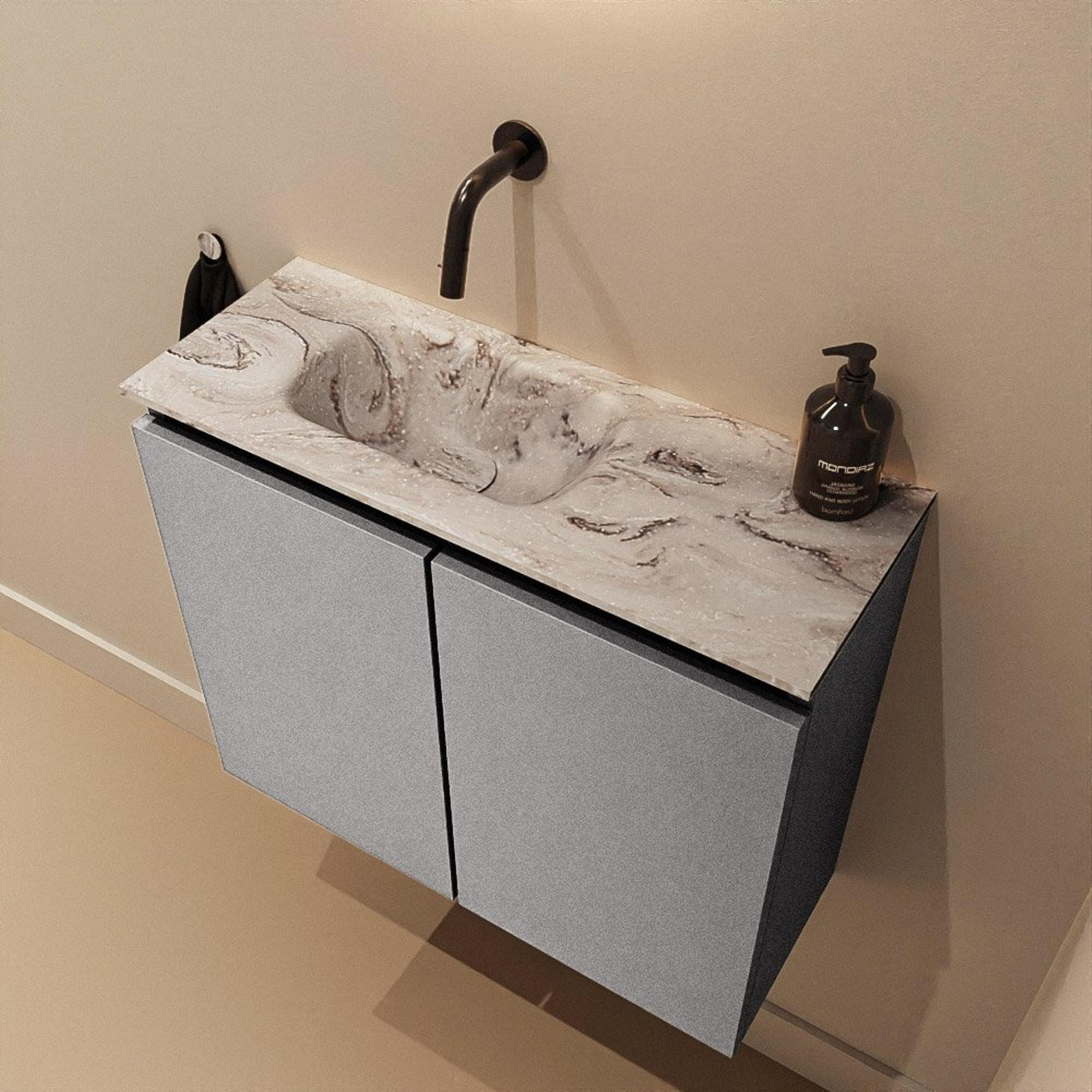 MONDIAZ TURE-DLUX 60cm toiletmeubel Plata. EDEN wastafel Glace positie links. Zonder kraangat.