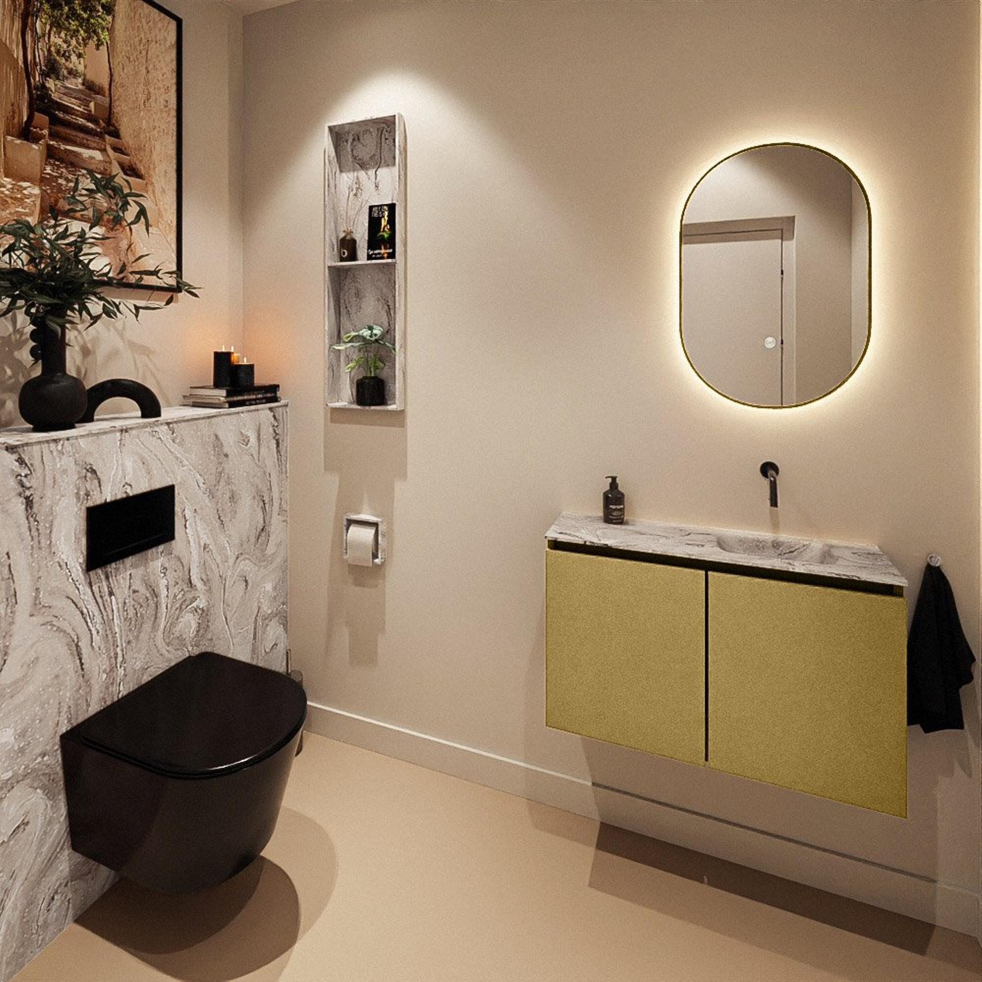 MONDIAZ TURE-DLUX 80cm toiletmeubel Oro. EDEN wastafel Glace positie rechts. Zonder kraangat.
