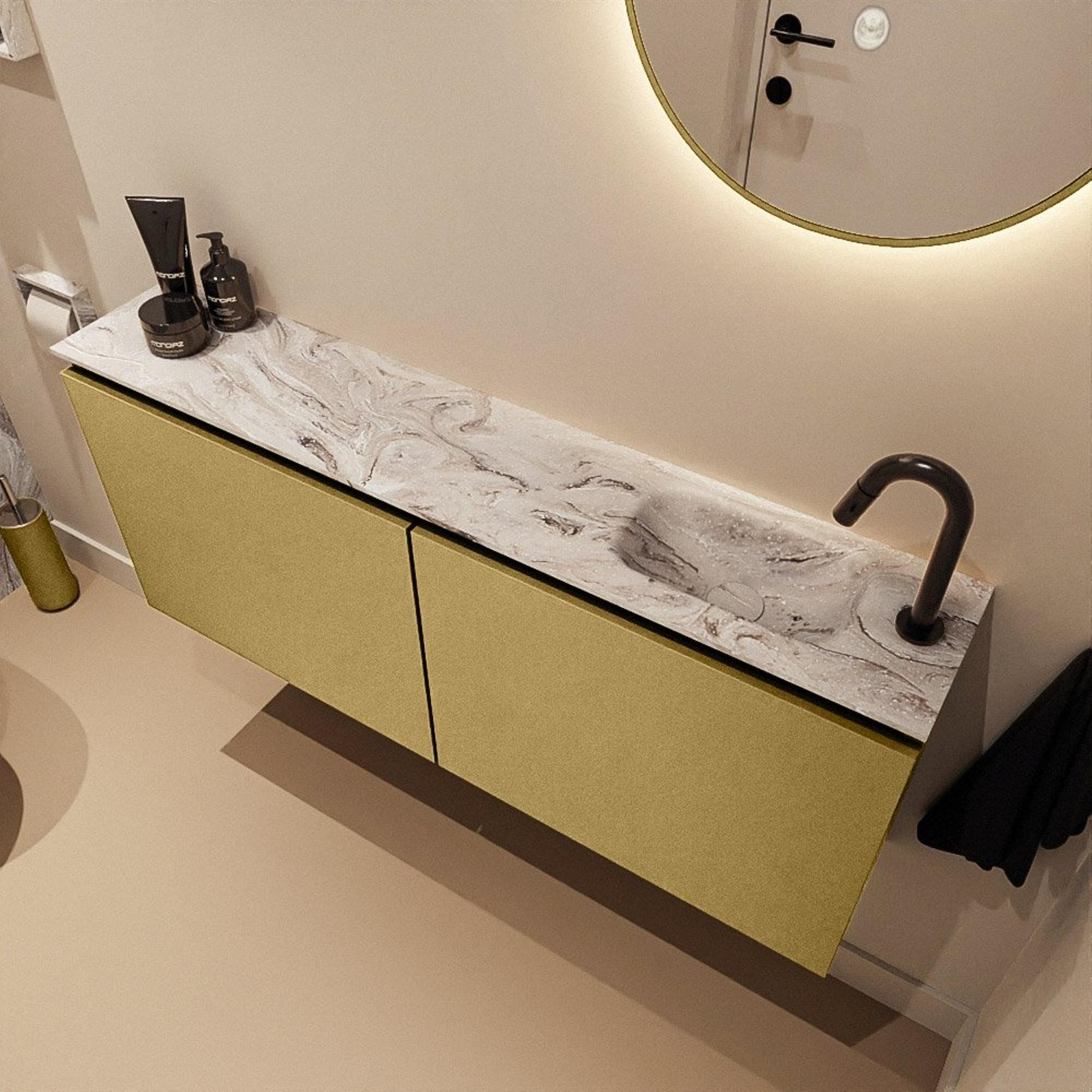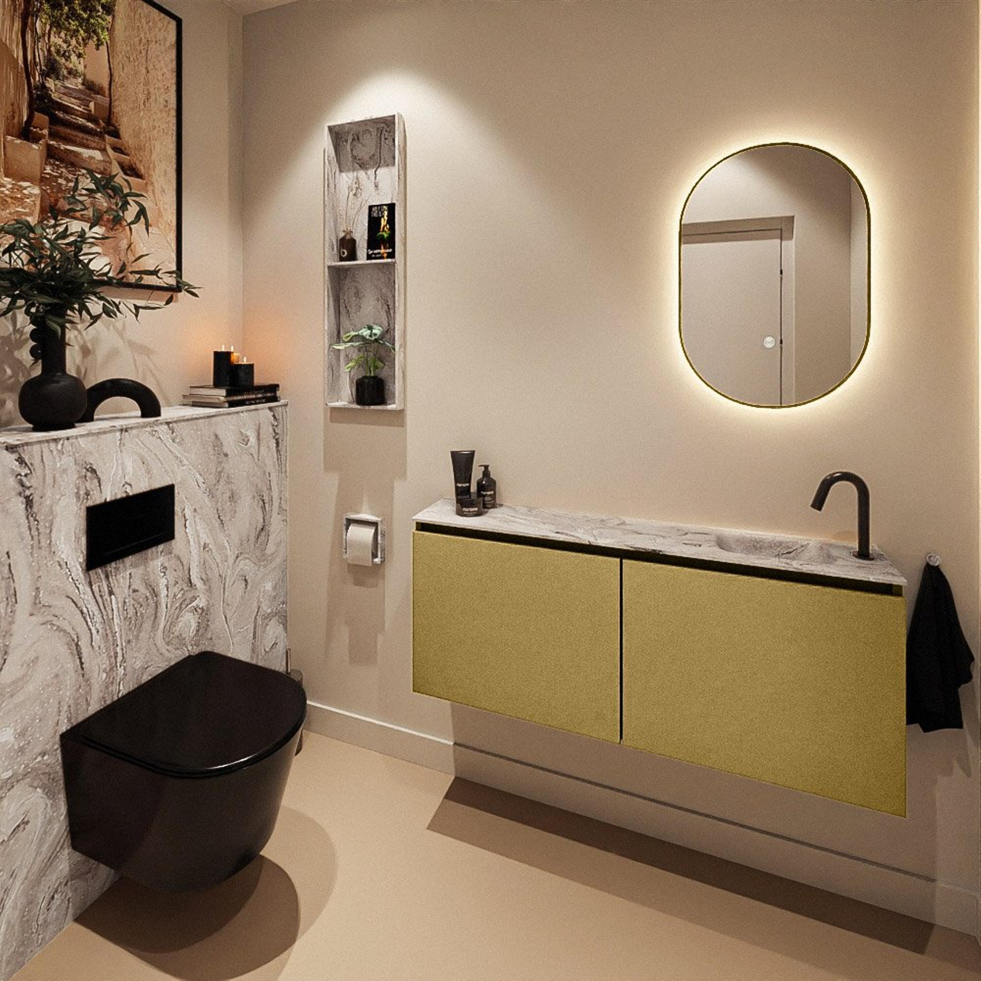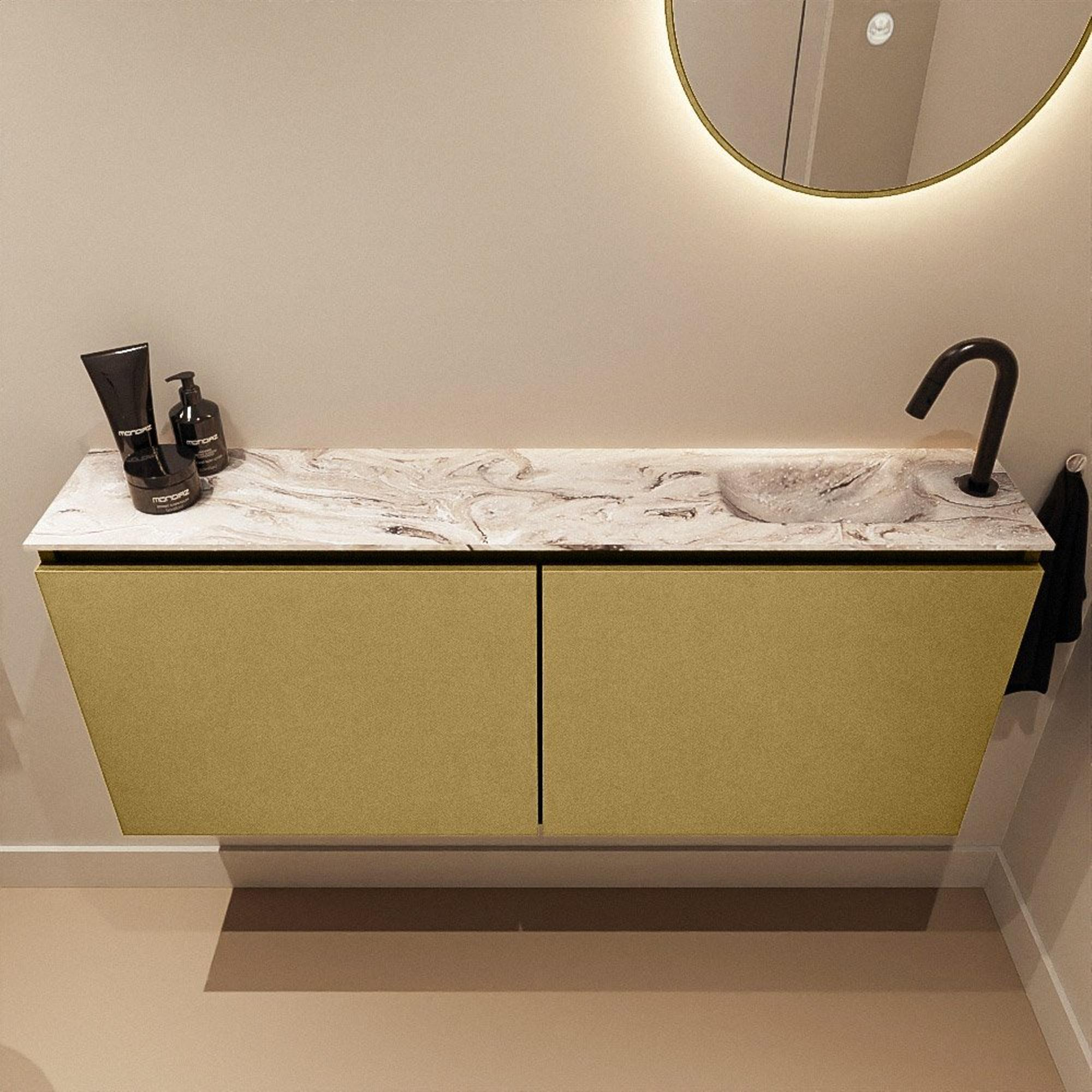 MONDIAZ TURE-DLUX 120cm toiletmeubel Oro. EDEN wastafel Glace positie rechts. Met 1 kraangat.