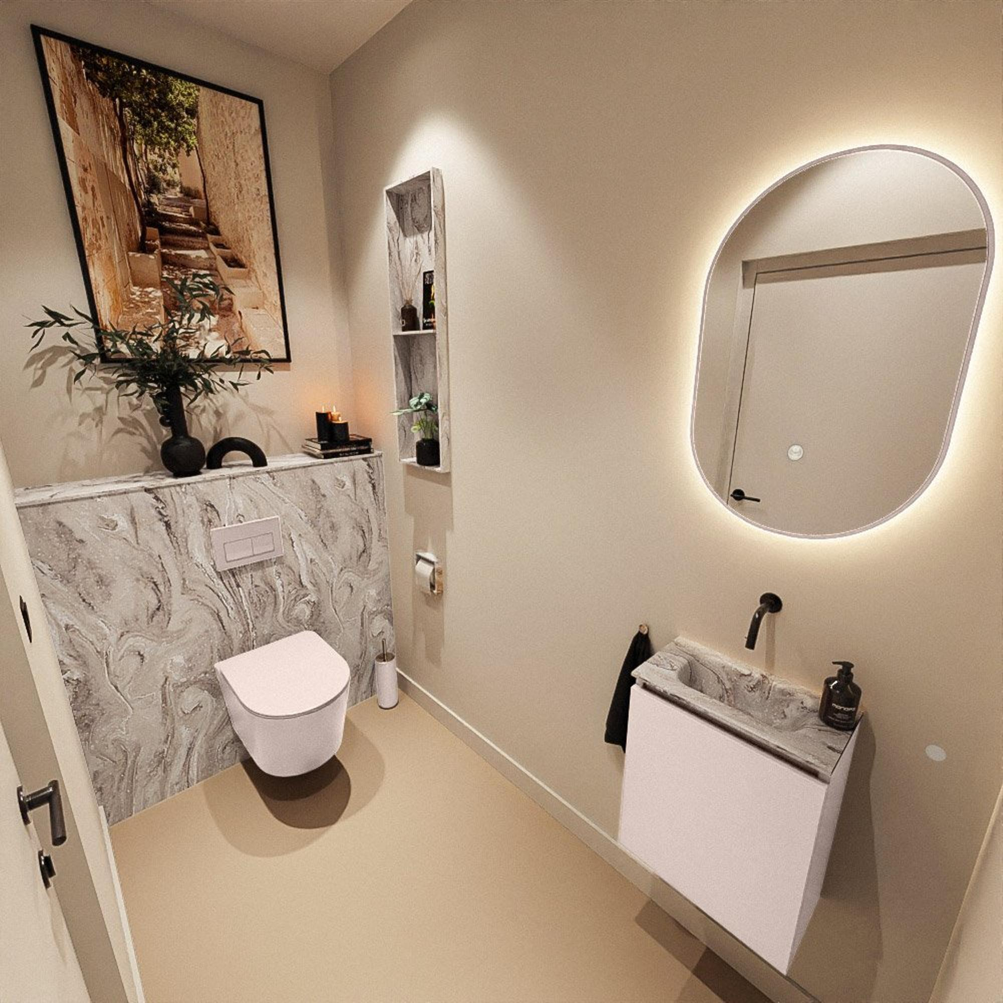 MONDIAZ TURE-DLUX 40cm toiletmeubel Rosee. EDEN wastafel Glace positie midden. Zonder kraangat.