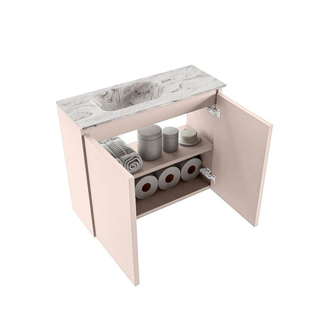 MONDIAZ TURE-DLUX 60cm toiletmeubel Rosee. EDEN wastafel Glace positie links. Zonder kraangat.
