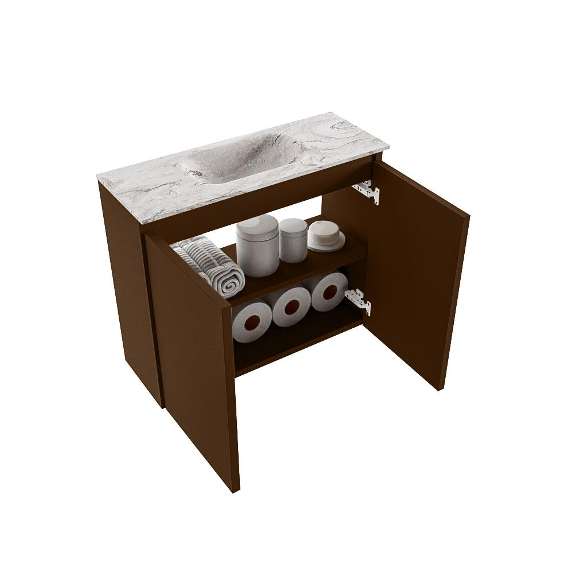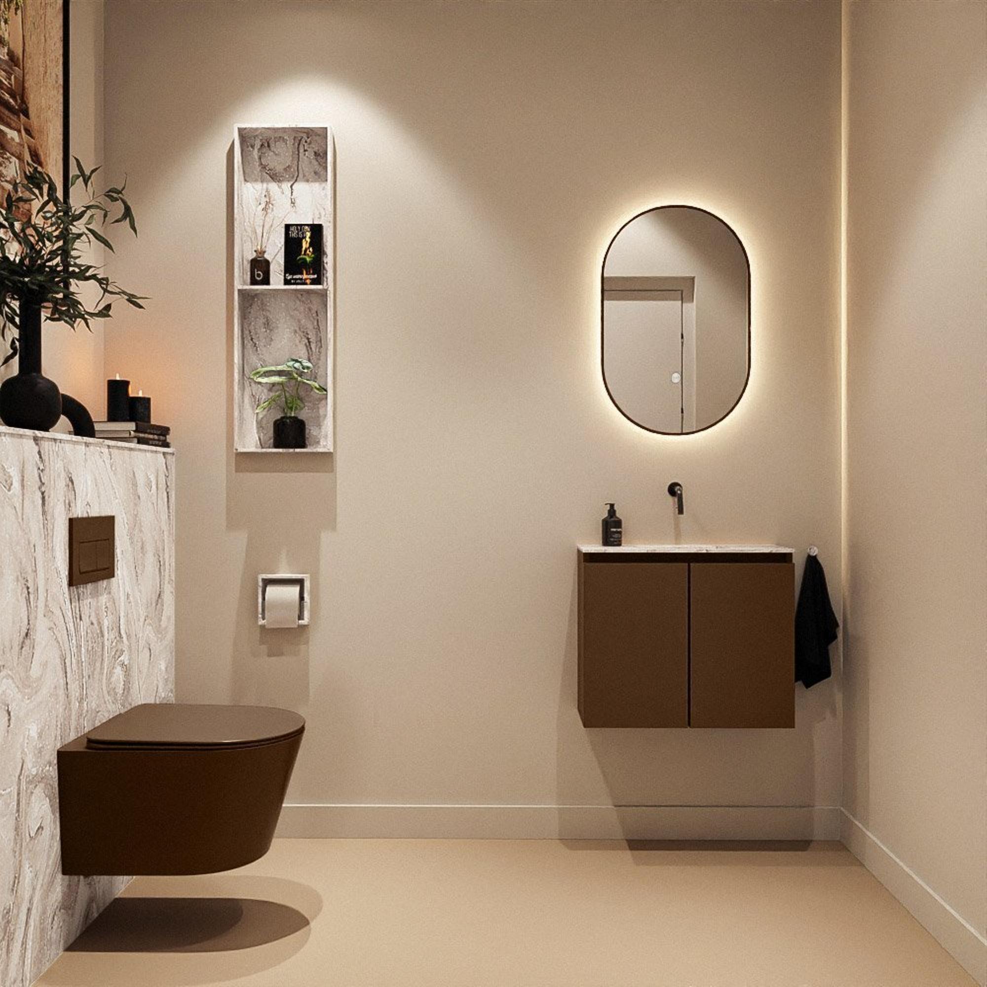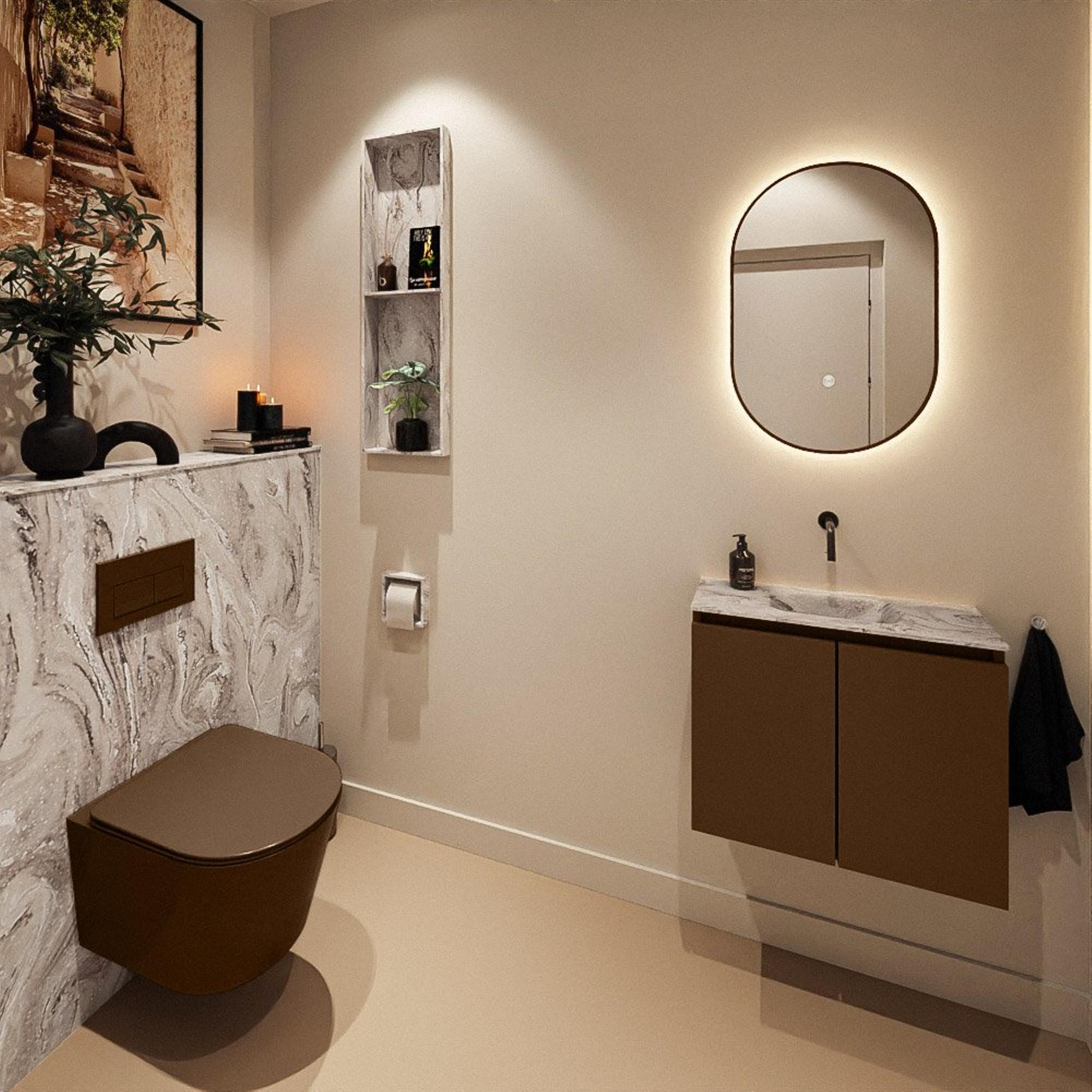 MONDIAZ TURE-DLUX 60cm toiletmeubel Rust. EDEN wastafel Glace positie midden. Zonder kraangat.