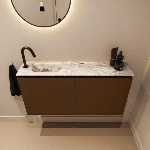 MONDIAZ TURE-DLUX 100cm toiletmeubel Rust. EDEN wastafel Glace positie links. Met 1 kraangat.
