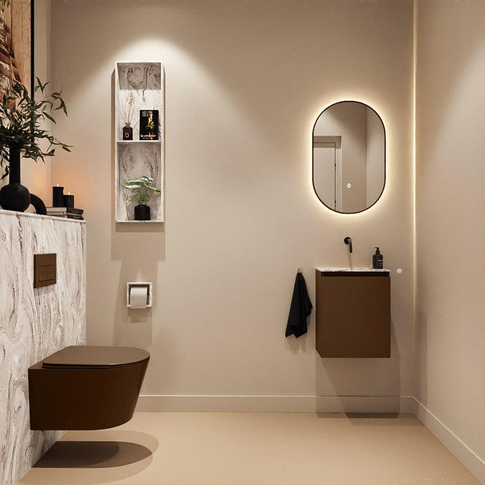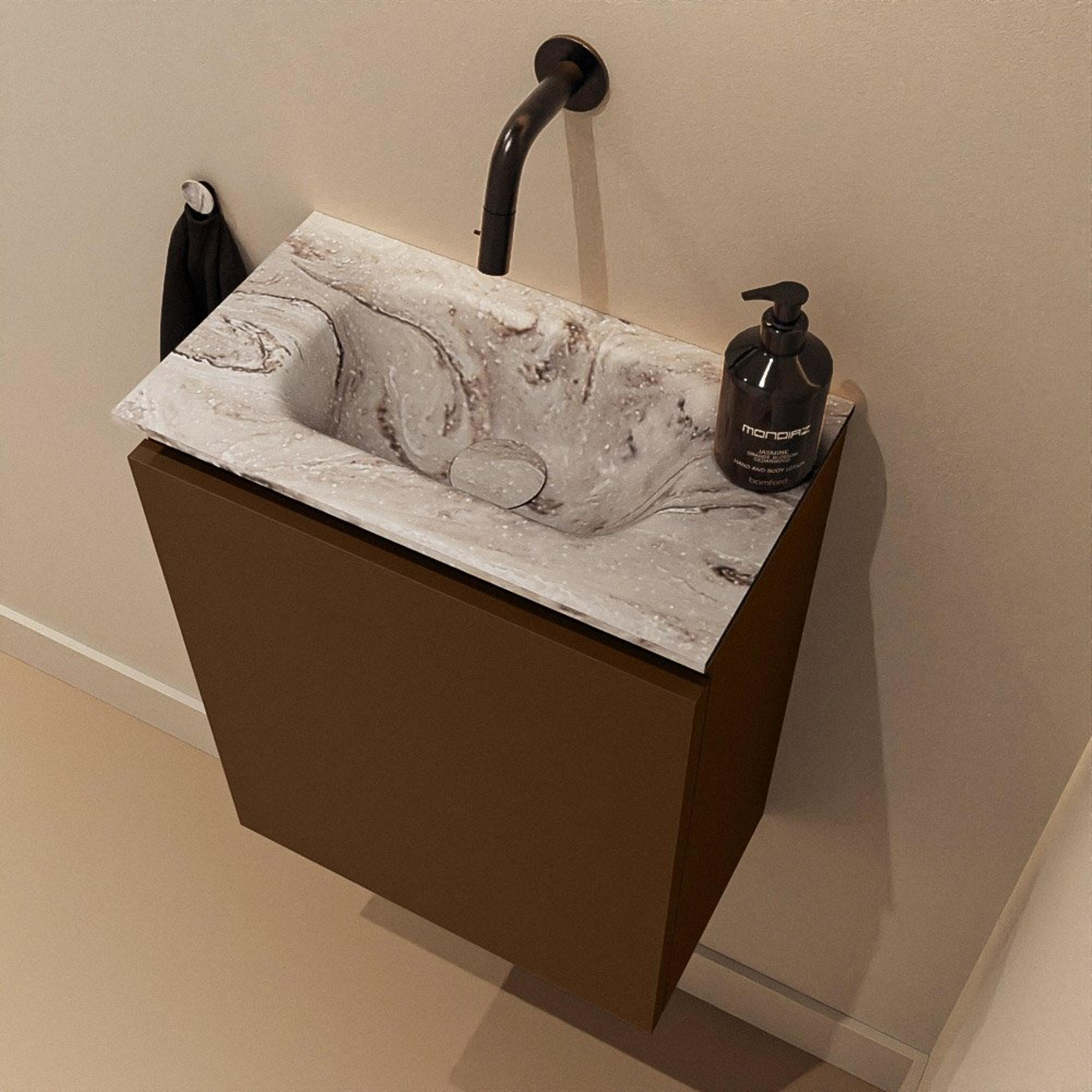 MONDIAZ TURE-DLUX 40cm toiletmeubel Rust. EDEN wastafel Glace positie midden. Zonder kraangat.